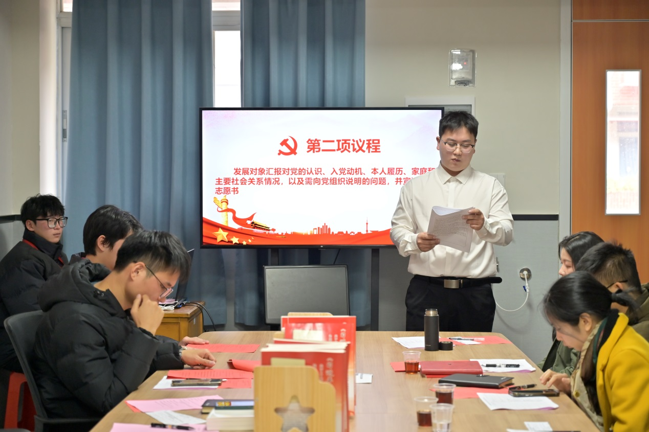 接着进入接收预备党员议程,首先,发展对象梁楚铭同志向党组织汇报对党的认识、入党动机、本人履历、家庭和主要社会关系情况,以及需向党组织说明的问题,并宣读了入党志愿书;入党介绍人介绍情况;党支部书记报告该同志的审查情况;参会党员对该同志的入党申请进行讨论发言,并对梁楚铭同志的入党问题进行无记名投票,最后党支部书记宣布无记名投票结果,全体参会党员以热烈掌声祝贺梁楚铭同志加入中国共产党。
