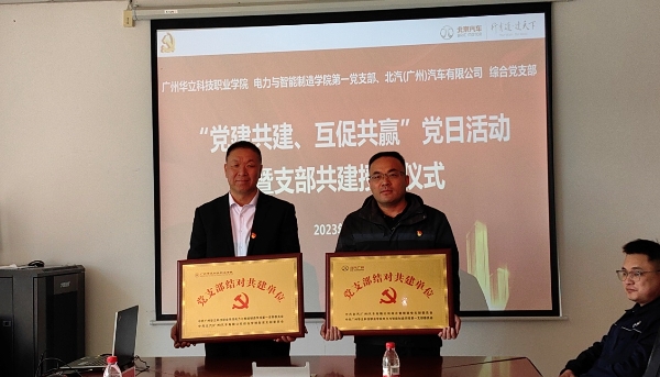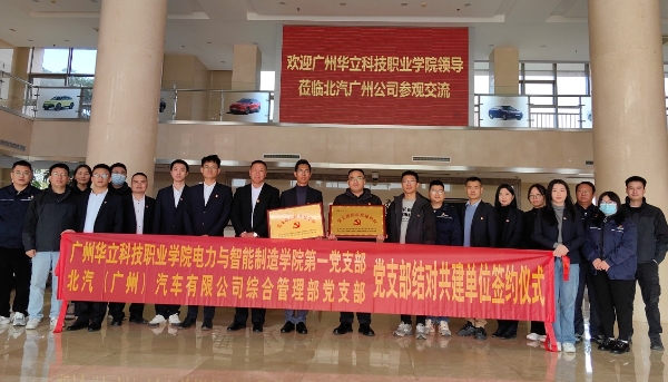 为学习贯彻党的二十大精神,实施教育强国、科技强国、人才强国目标,建设学习型、服务型、创新型党组织,发挥党建在“产教融合、校企合作”中的引领作用,以教促产、以产助教,构筑校企合作新生态,凝聚党建工作合力。电力与智能制造学院第一党支部与我校的校企合作单位──北汽(广州)汽车有限公司综合管理党支部,经过协商决定开展校企党支部结对共建。
