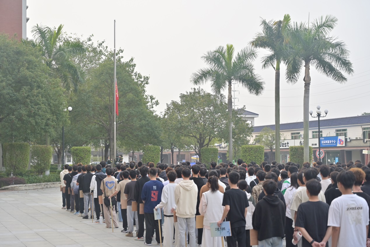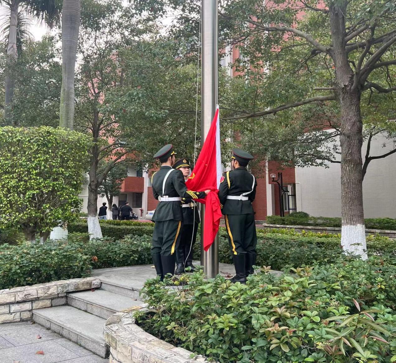 在晨光熹微的综合楼前广场上,伴随着庄严的国歌声,五星红旗缓缓升起,象征着祖国的繁荣昌盛。电力学子们肃立,目光随着旗帜的上升而仰望,心中涌动着真挚的爱国情怀和立志报国、奋发有为的青春热情。