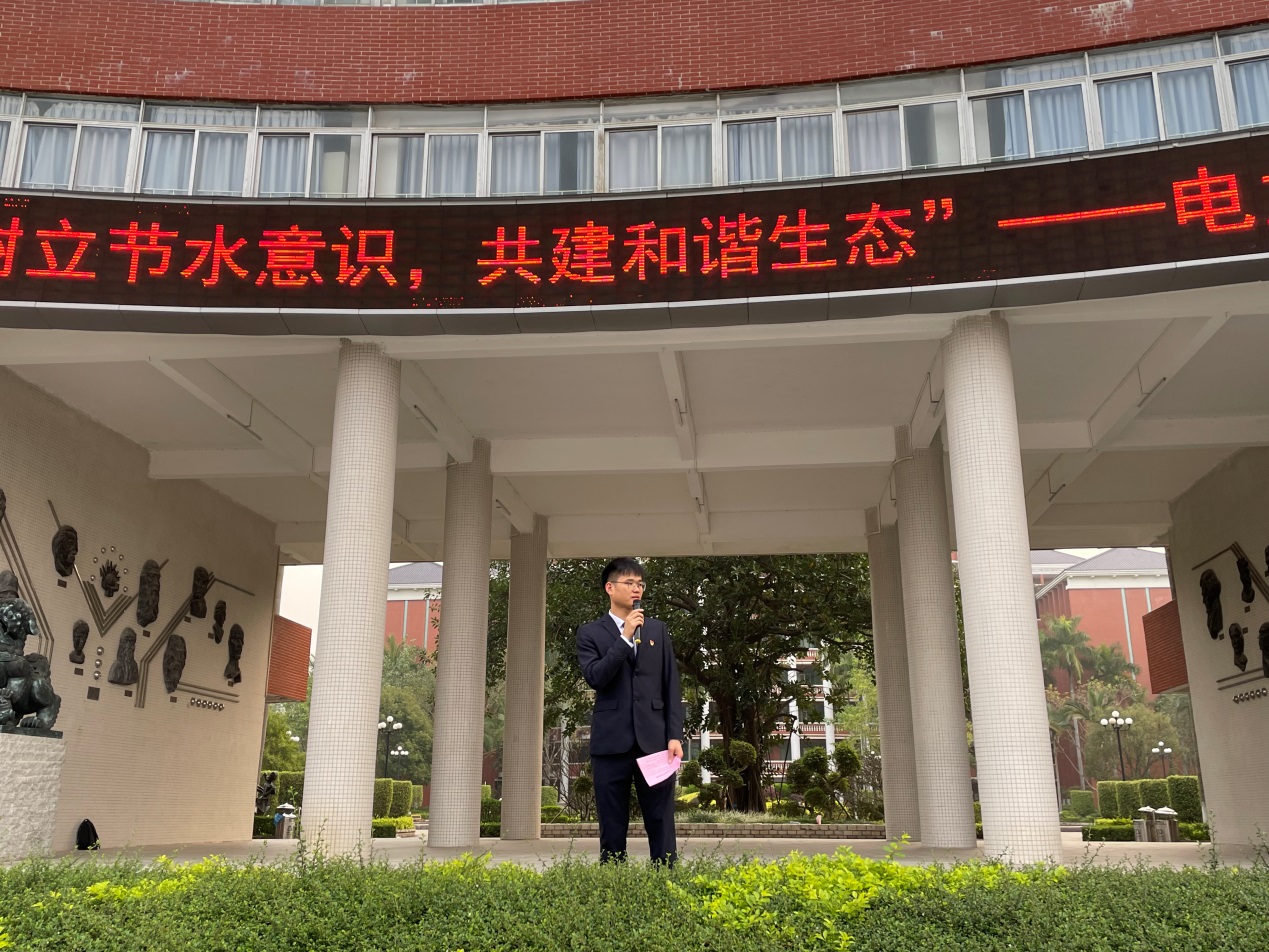 最后,他希望同学肩负起时代责任,要做引领社会潮流的人,不但自己要节约用好每一滴水,同时,还要引领周边人也要节约用好每一滴水。在第23个世界水日到来之际,振臂高呼:人人都要树立节水意识,共建和谐生态,共同守护地球家园!
