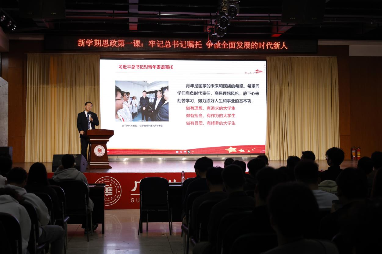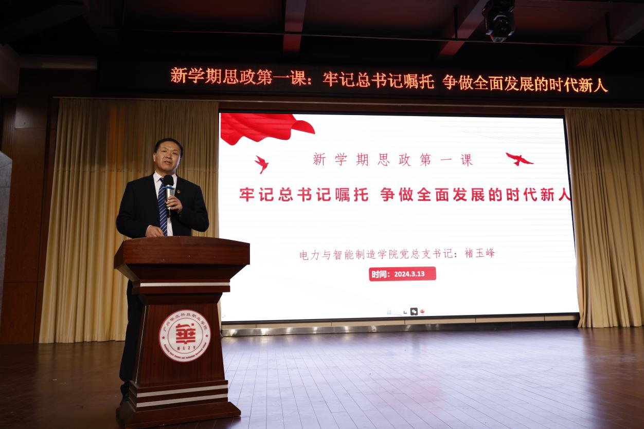 为了学习贯彻党的二十大精神,落实立德树人教育根本任务,电力与智能制造学院党总支按照学校党委要求,于3月13日晚上在图书馆八楼,学院党总支书记褚玉峰教授给全院2023级全体同学们上了题目为“牢记总书记嘱托,争做全面发展的时代新人”的思政第一课。