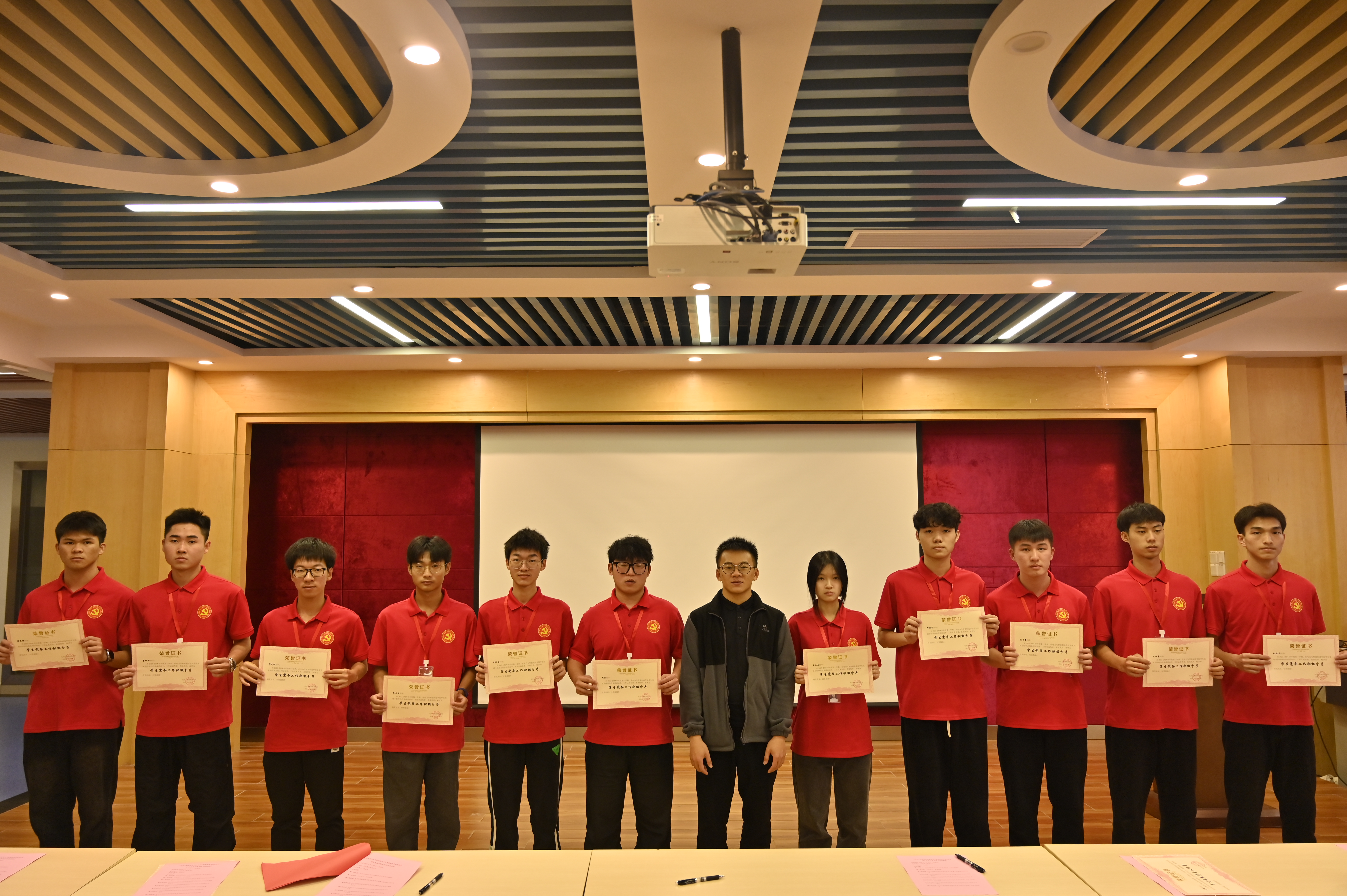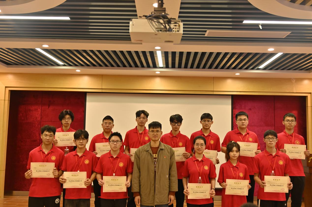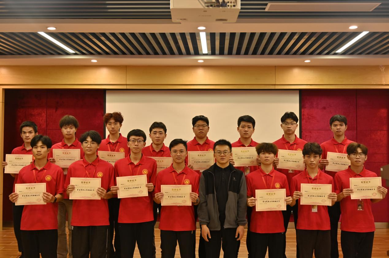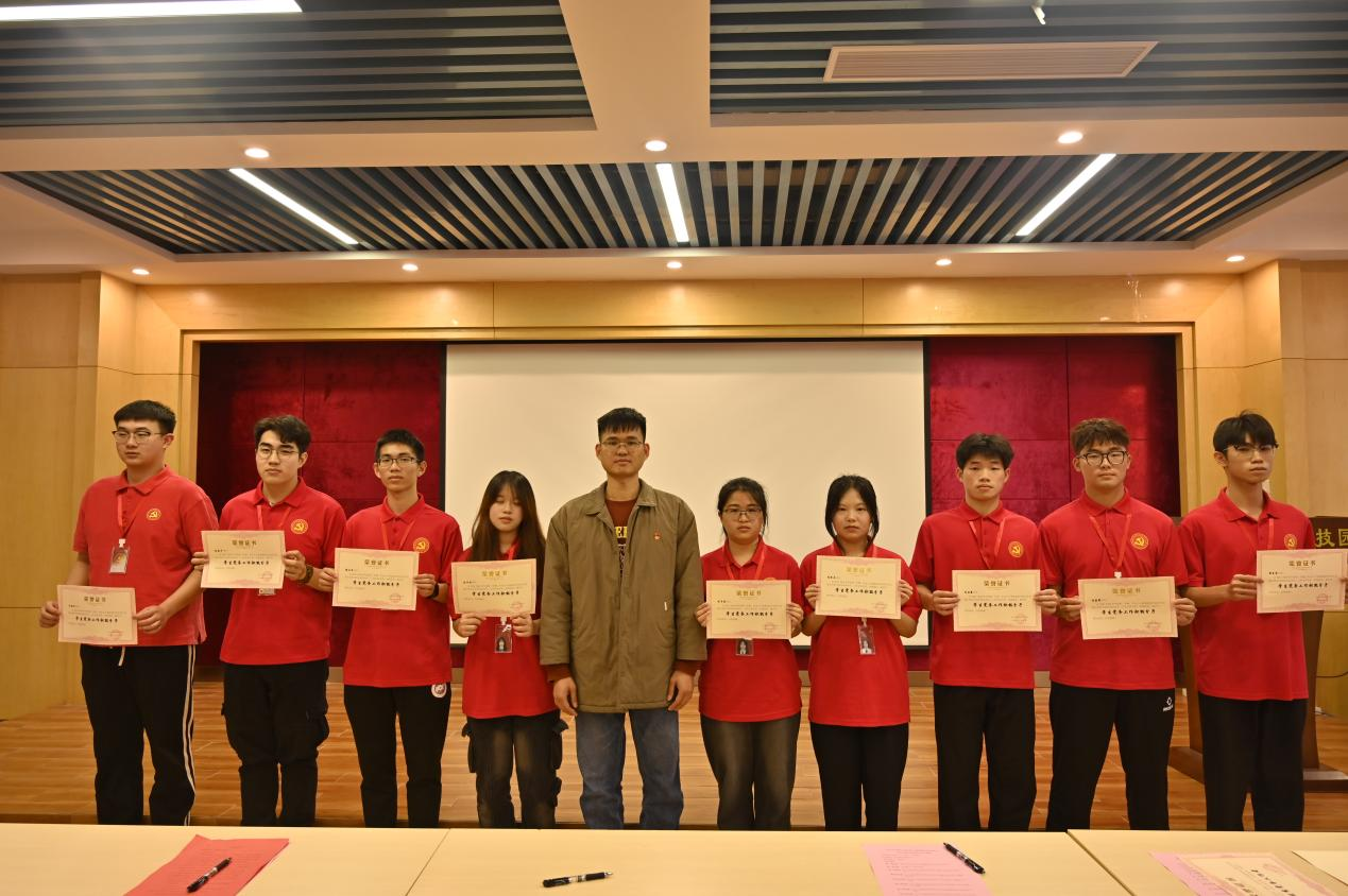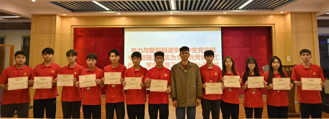 第二项议程,宣布电力与智能制造学院党总支学生党建小组学生党务优秀工作者、学生党务积极分子名单。学院党总支专职副书记郑理广同志、学生党建小组指导老师赖锦康同志为学生党务优秀工作者、学生党务积极分子颁奖。