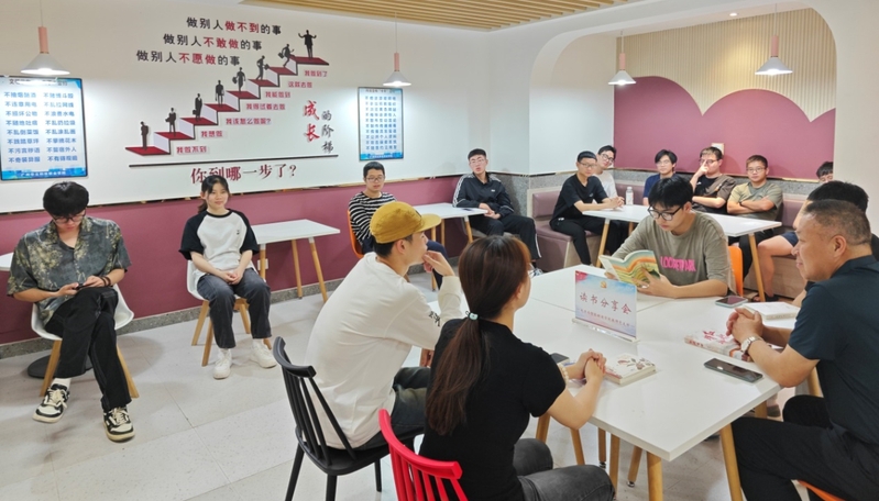 作为电力与智能制造学院的党总支书记、院长褚玉峰,3月25日走进学校一站式学生社区的书吧,组织同学们进行读书分享。