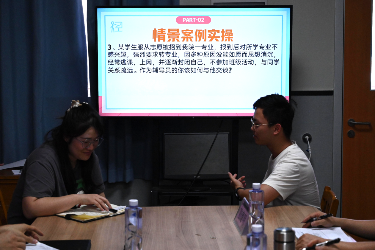 首先,由学院党总支专职副书记、学管主任郑理广介绍这次比赛意义和要求,本次比赛主要包括“组织主题班会”和“情景案例实操”两个项目。