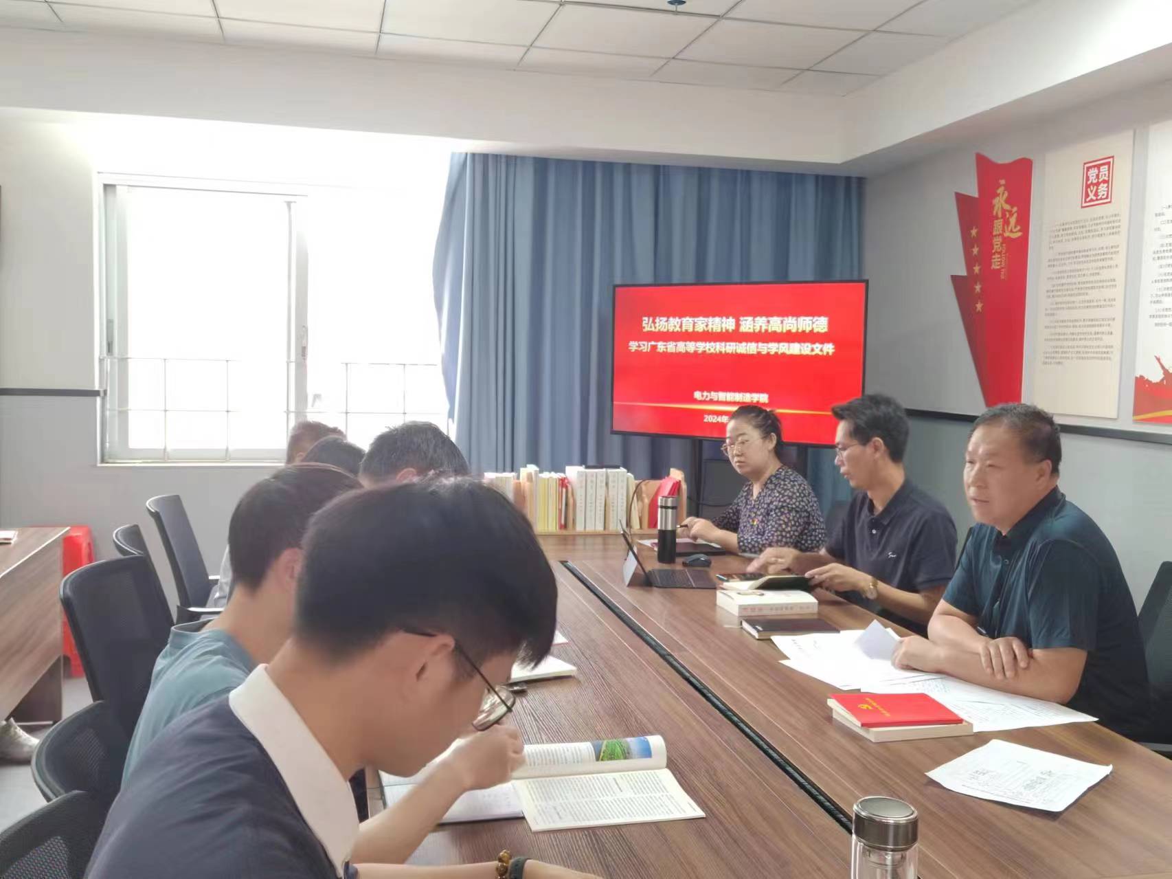 会上,学院教学主任刘杰带领大家学习了《广东省教育厅关于进一步加强高等学校科研诚信与学风建设的通知》文件精神,对文件进行详细导读,一是进一步提高思想认识;二是进一步强化高校主任责任;三是进一步加强科研诚信的教育引导;四是进一步加强工作体系的制度化建设;五是严肃查处违背科研诚信要求的行为;六是常态化开展科研诚信对照检查处整改。会上,全体教师还对文件精神进行了交流研讨。