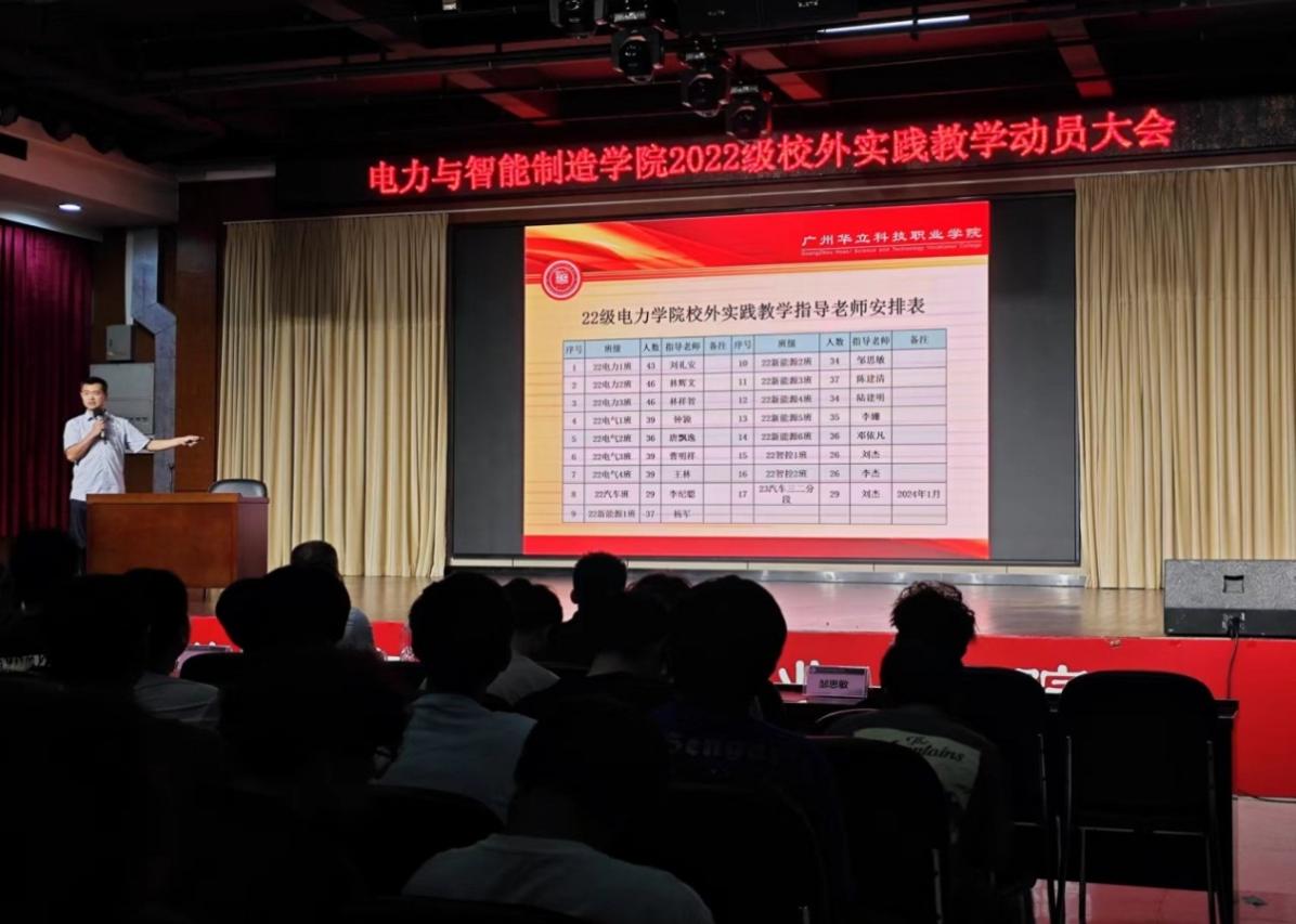 电力与智能制造学院为推进2022级校外教学工作, 4月28日晚上在图书馆八楼召开了22级校外实践教学动员大会。参加本次会议的领导有电力与智能制造学院党总支书记、院长褚玉峰,党总支专职副书记、学管主任郑理广,校外教学主任杨军,22级电力辅导员钟颖老师、邹思敏老师,23级汽车32分段班辅导员赖锦康等人。大会由党总支专职副书记、学管主任郑理广主持。