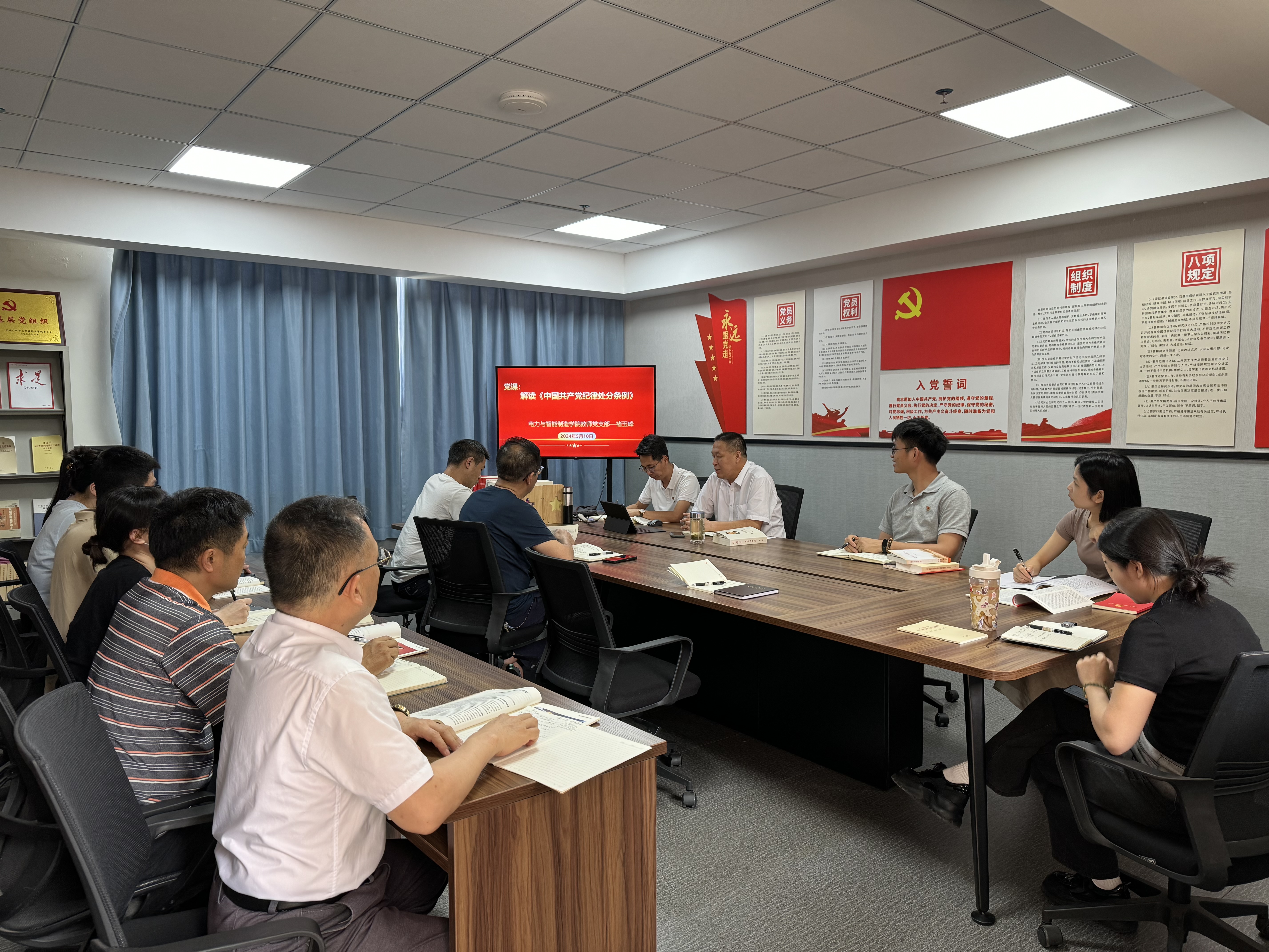 按照电力与智能制造学院党总支《党纪学习教育学习计划》的安排部署, 5月10日下午在西一楼514B党员活动室,学院党总支书褚玉峰为教师党支部的全体党员上了题目为“解读《中国共产党纪律处分条例》的党课。