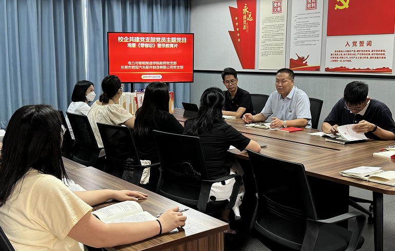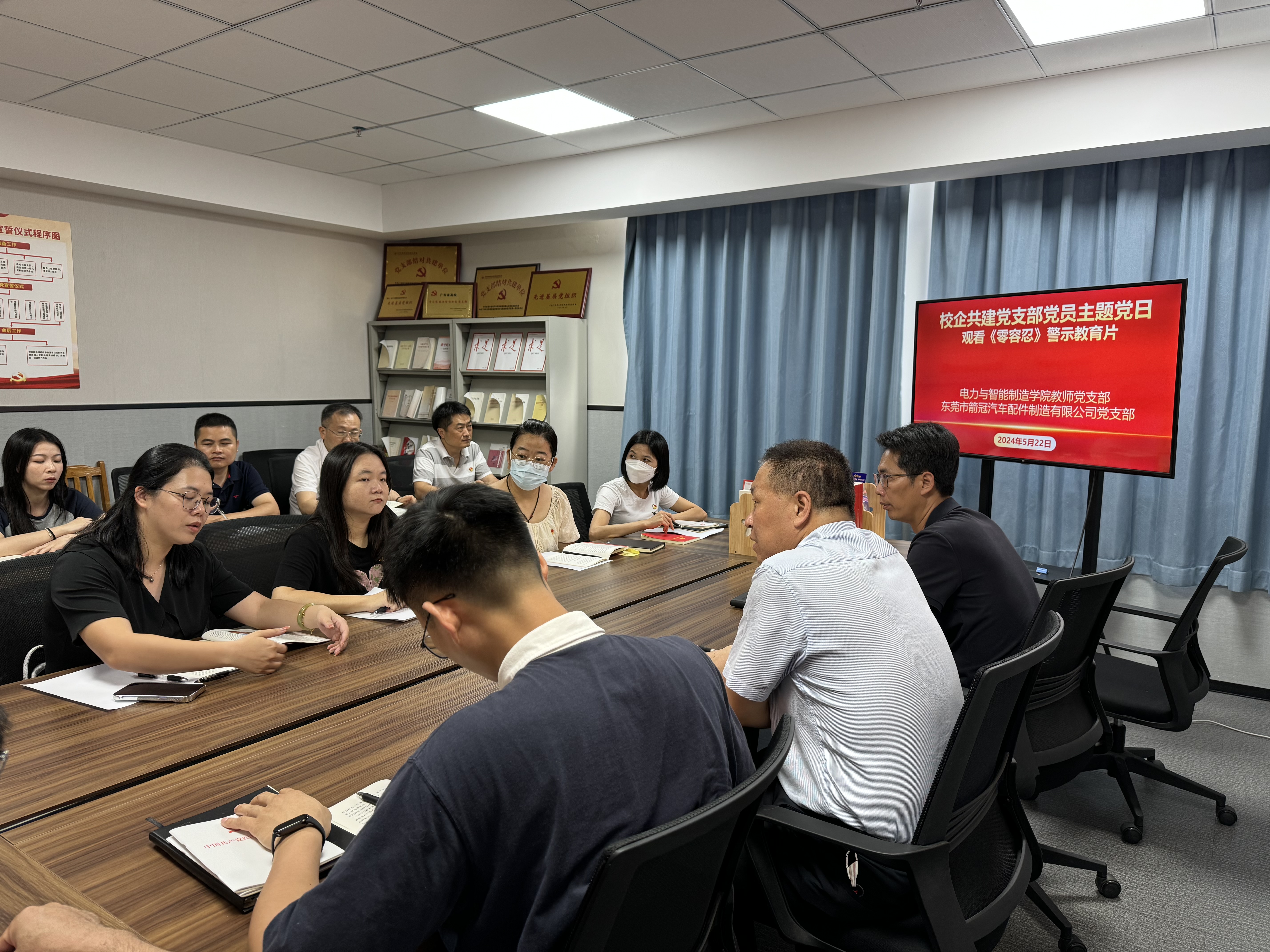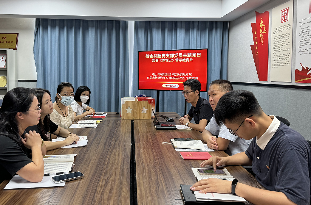 东莞市箭冠汽车配件制造有限公司党支部,是我院教师党支部共建结对单位之一,5月22日东莞市箭冠汽车配件制造有限公司党支部委员李谦仪销售经理带队来校进行招聘宣讲,应邀请参加了学院教师党支部开展的党员主题党日活动,共同观看《零容忍》专题片第一集——《不负十四亿》。教师党支部全体党员与企业党支部党员代表参加会议,会议由孙令真书记主持。
