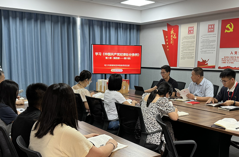 电力与智能制造学院党总支书记褚玉峰参加了教师党支部的党纪学习教育,他带领全体党员学习《中国共产党纪律处分条例》中第四章至第六章的内容。