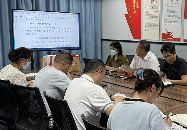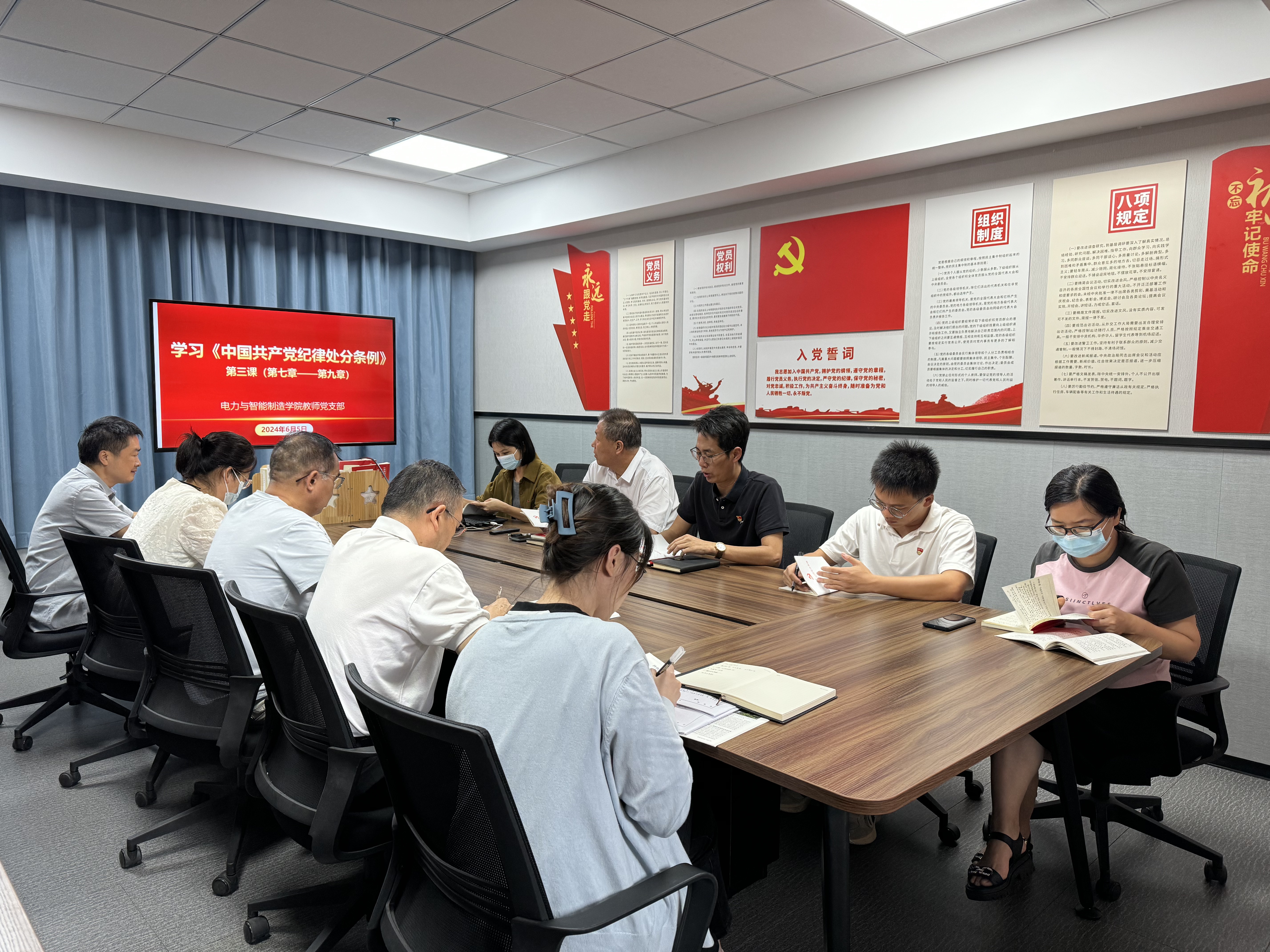本节课,由电力与智能制造学院教师党支部书记孙令真同志领学《中国共产党纪律处分条例》中第七章至第九章的内容。
