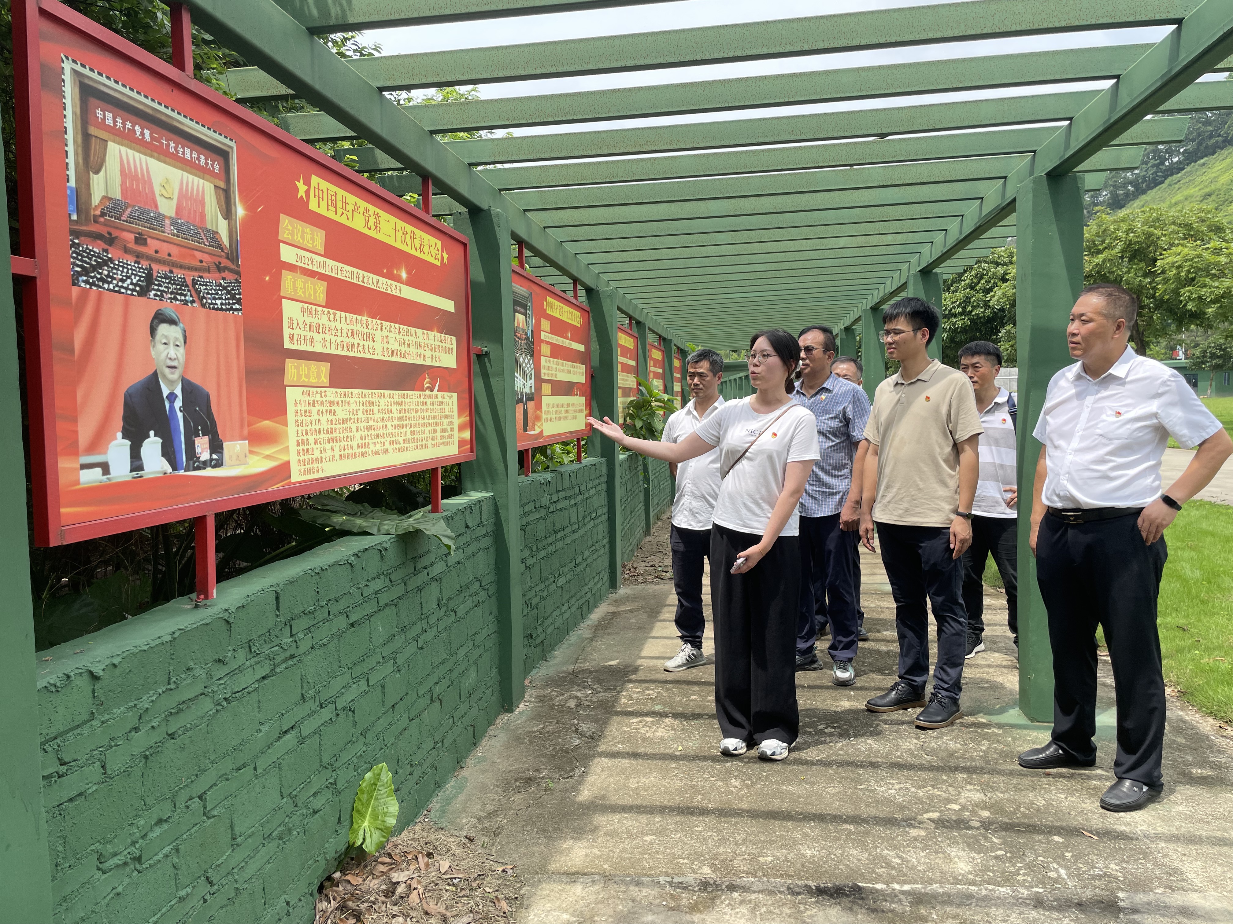 在长征先锋拓展培训基地,党员们参观了“红色历程”党史文化长廊。“红色历程”党史文化长廊以图文并茂的形式,沿着中共一大至二十大的时间线索,清晰展示了会议会址、召开情况、重要内容以及历史意义,回顾了党的百年奋斗历程。党员们重新回顾党的历届代表大会的重要历史意义,学习了长征精神。