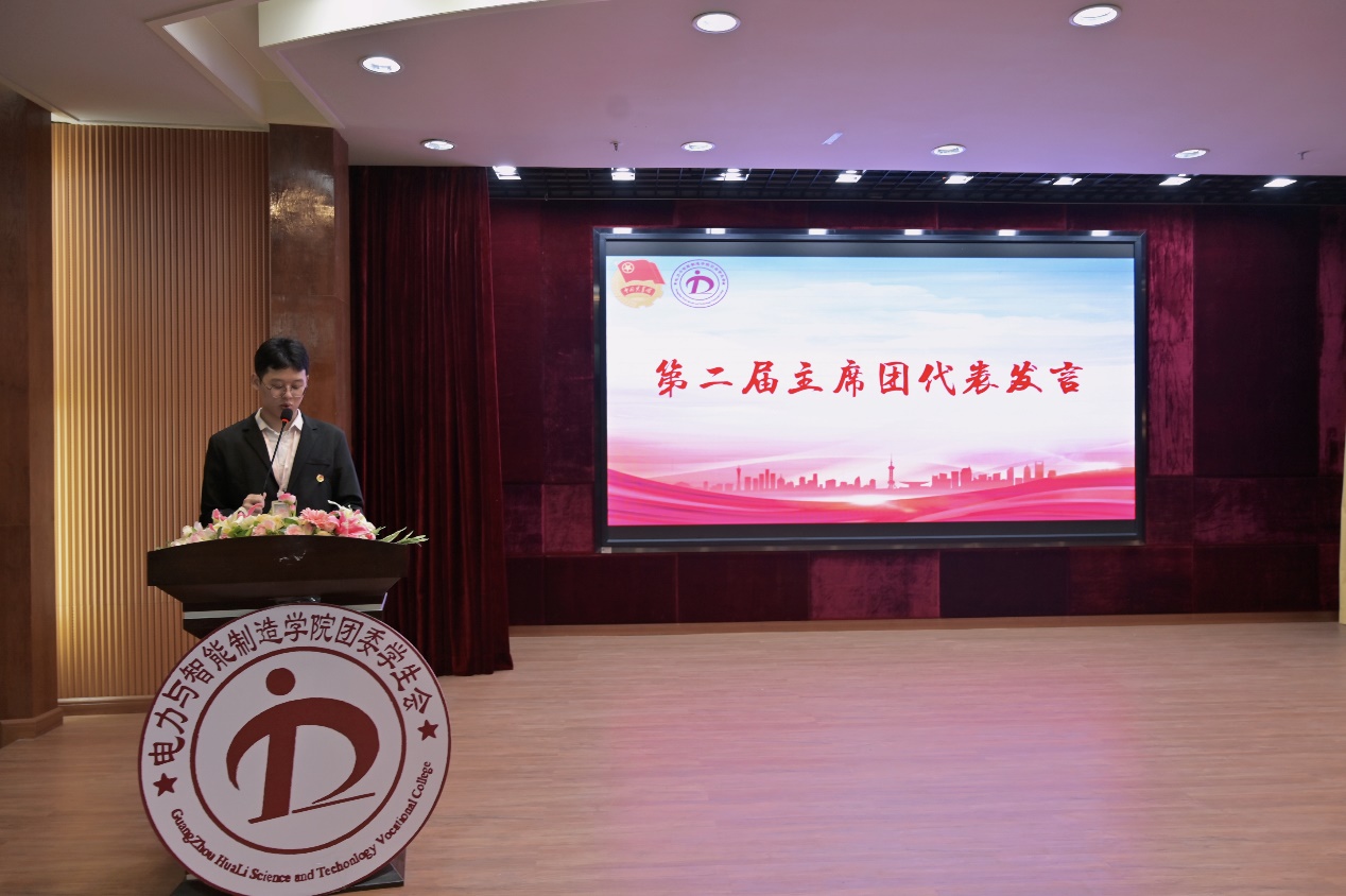学院党总支专职副书记、学管主任郑理广老师在开场致辞中对第一届团委学生会干部一年来的辛勤付出和取得的成果表示了充分的肯定和衷心的感谢。正是有了他们的无私奉献和不懈努力,才使得团委学生会的工作能够稳步推进,取得了令人瞩目的成绩。并对新一届干部提出要求,希望各位新一届的干部做好团委学生会的工作,也成为同学们的楷模和榜样;其次,团委学生会干部不仅为学院同学们服务,更要学会学习,以更高的标准要求自己,为团委学生会的发展贡献自己的力量。
