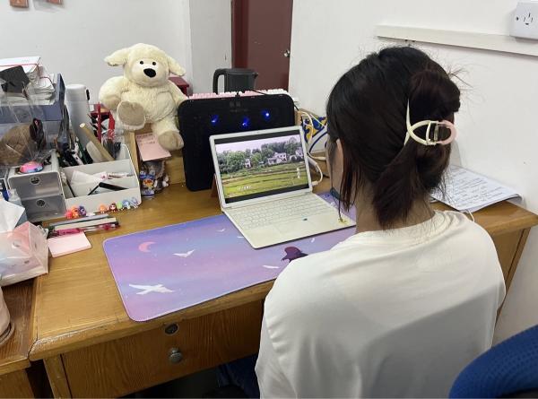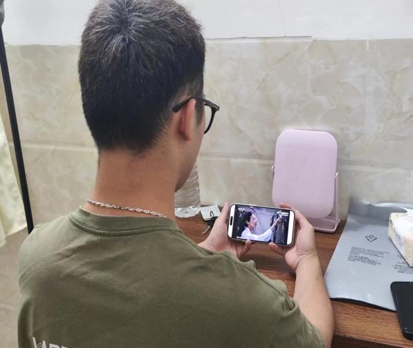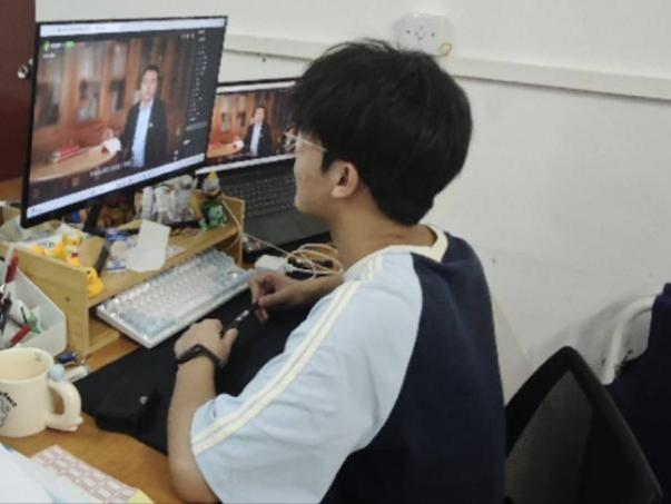 学生党员观看学习照片