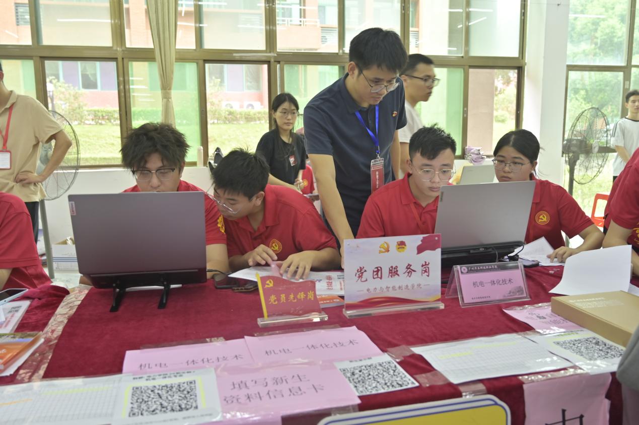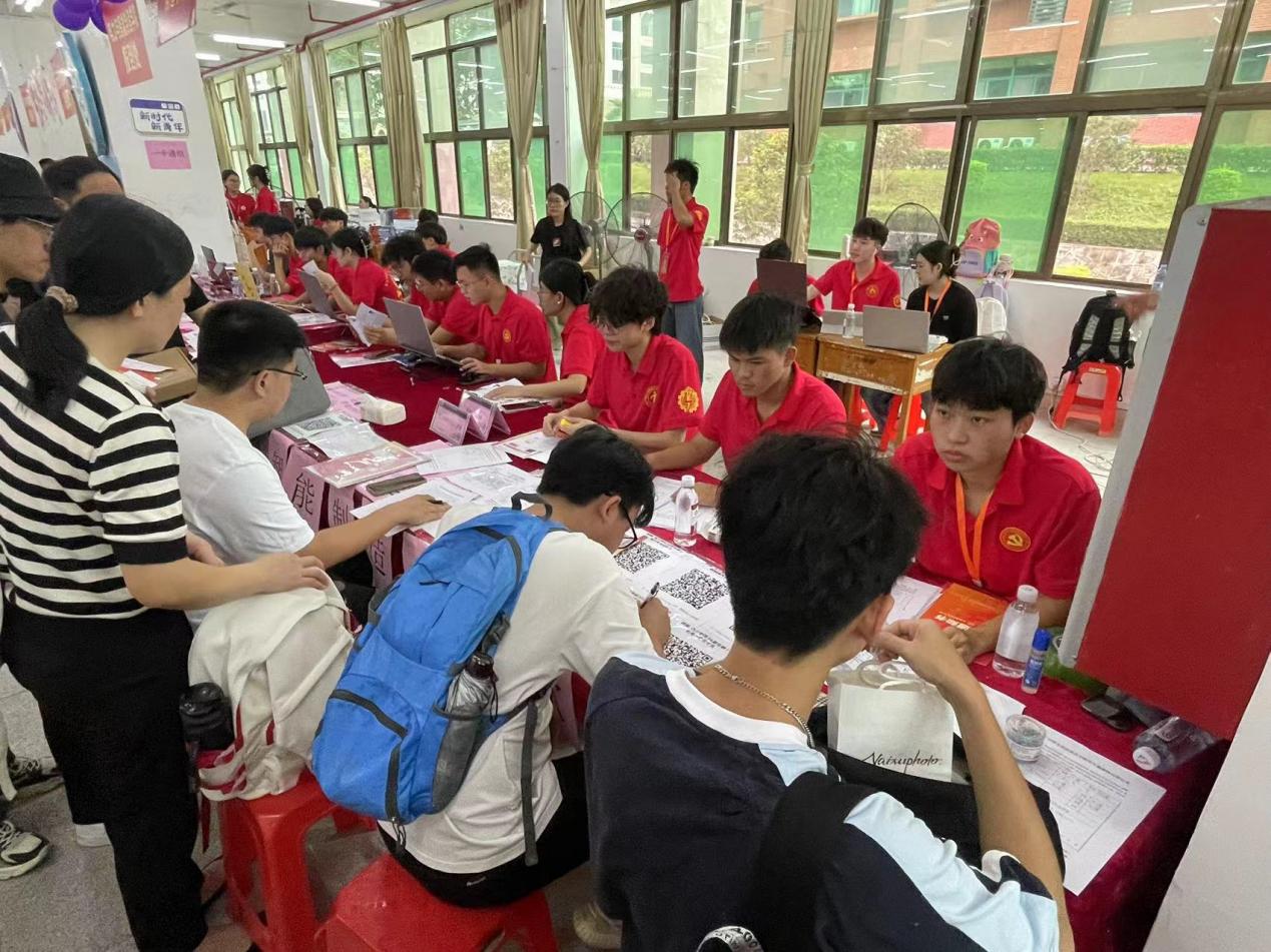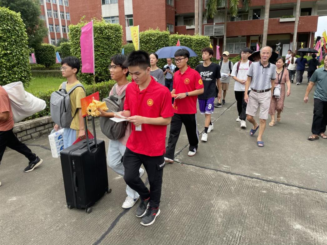“党建红”成为了迎新现场最鲜明的颜色,学院党总支在新同学入学的第一天将党建文化融入了志愿服务中,在萌新们的心灵里埋了“红色种子”。