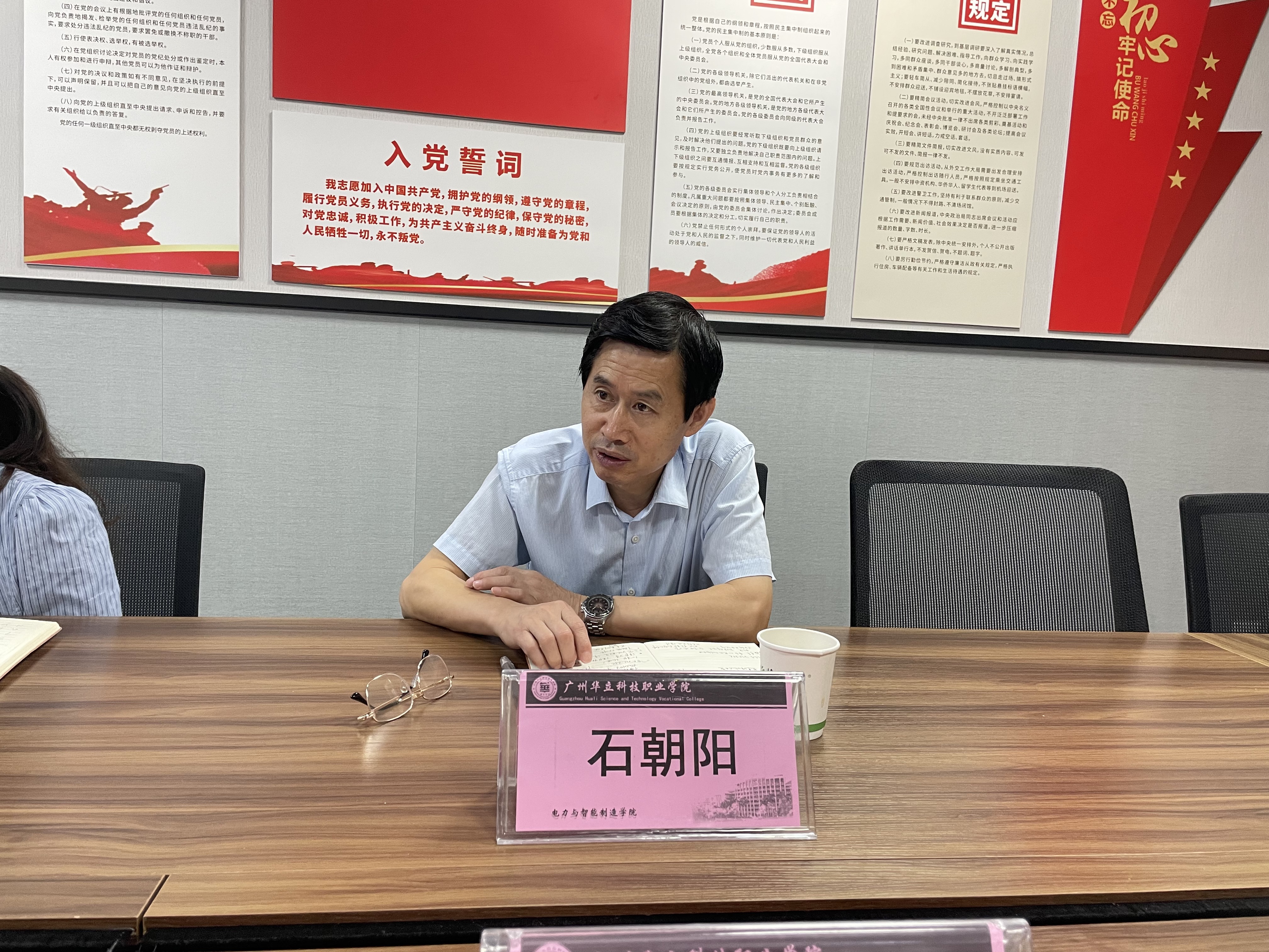 学校党委办公室主任石朝阳对电力与智能制造学院的党建工作取得的成绩给予充分肯定,并对学院党建工作给予指导,他讲到,当前最重要的工作是要全力以赴做好省级样板党支部的申报准备工作,对照广东省教育工委前年下发的申报书模板,尽快启动申报材料的撰写工作,材料要反复打磨保证质量。他还对在科研项目中如何发挥党员先锋先锋模范作用提了具体意见,对“双带头人”教师党支部书记“广东行”项目的建设提出了要求。