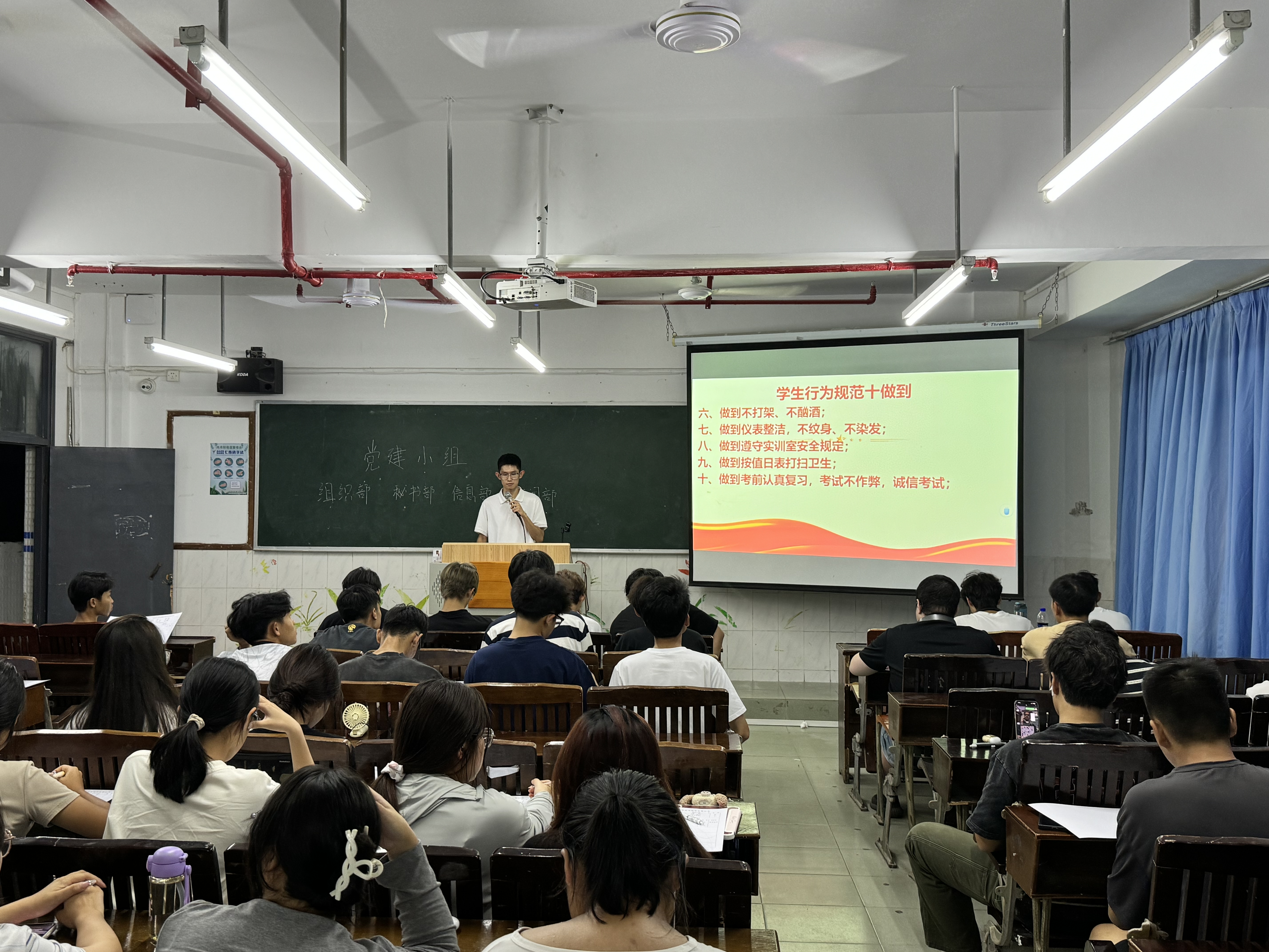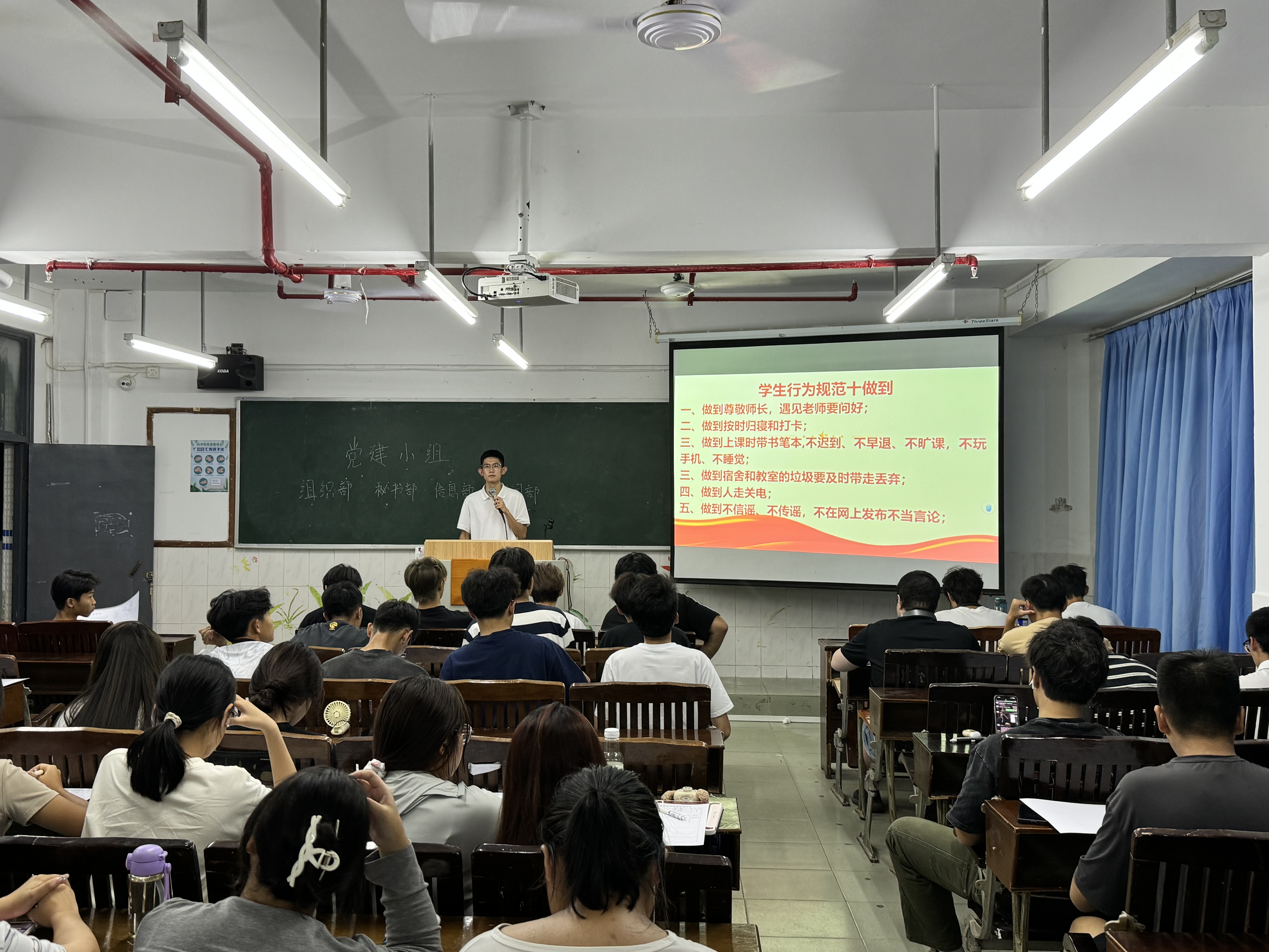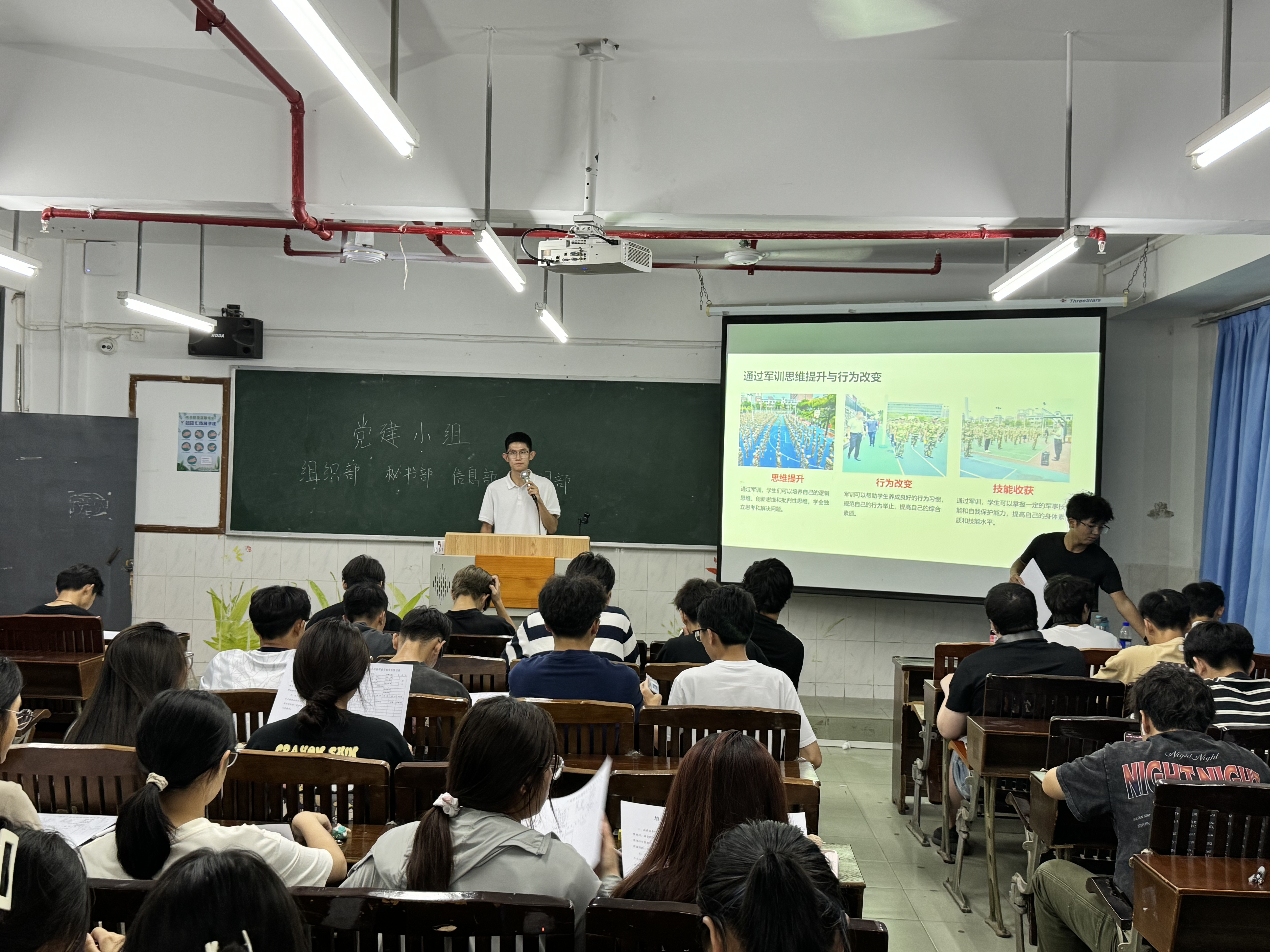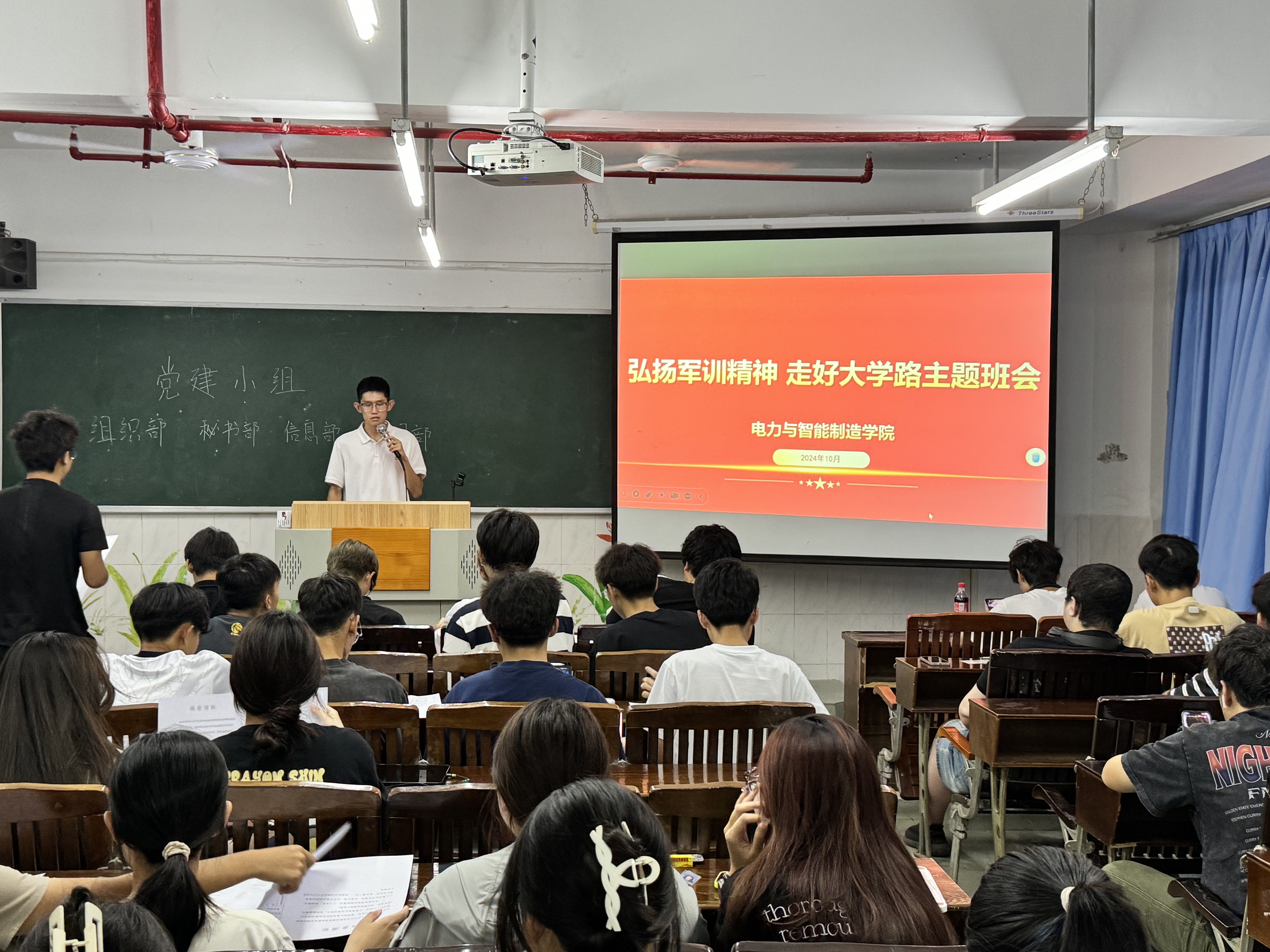 2024年级新同学军训已经胜结束,电力学院党总支为使同学们能将在军训中形成的良好作风和习惯,继续保持下去,应用到大学生活中,要求全院新生辅导员共同开展“弘扬军训精神,走好大学路”主题”班会。