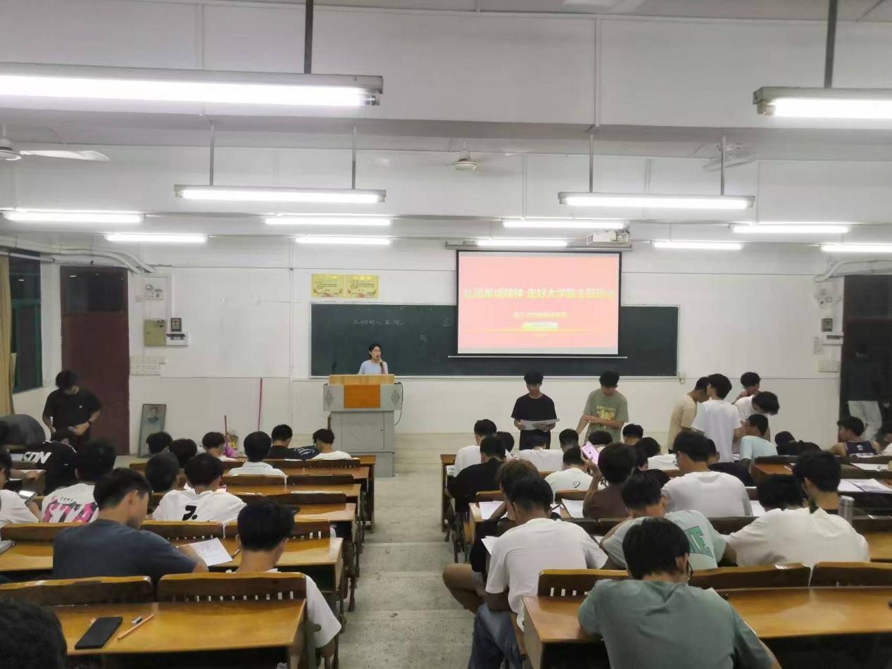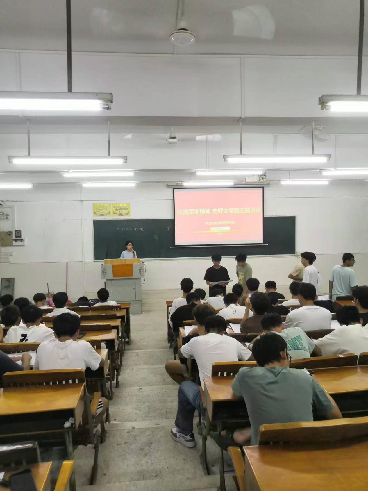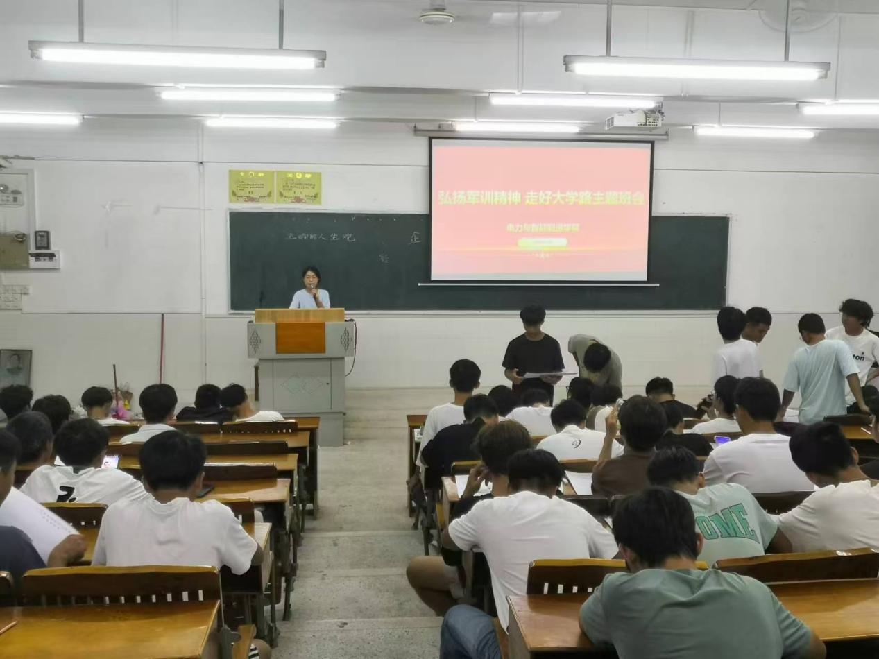 2024年级新同学军训已经胜结束,电力学院党总支为使同学们能将在军训中形成的良好作风和习惯,继续保持下去,应用到大学生活中,要求全院新生辅导员共同开展“弘扬军训精神,走好大学路”主题”班会。