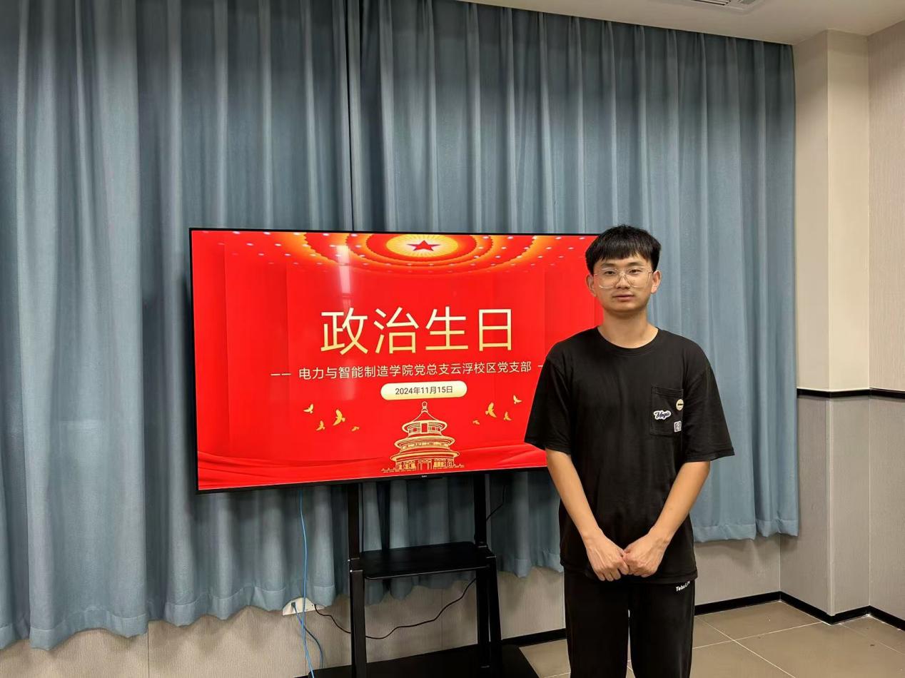 作为电力与智能制造学院的一名党员教师肖文相,在收到学院党组织发来的“政治生日”贺卡,我的心情格外激动,感谢组织的关怀。11月15日,是我的政治生日,这一天对我而言具有特殊的意义。我认为政治生日是表达对党的忠诚和坚定的重要时刻。火红的党旗永远飘扬在我心中,庄严的入党誓词永远融入我灵魂深处,成为我行动的力量源泉。