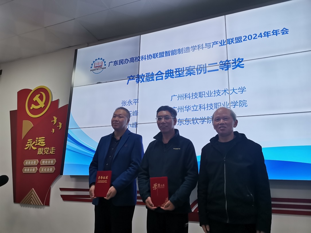 会上,公布了广东民办高校科协联盟智能制造学科与产业联盟 2024年产教融合创新案例获奖名单,我院的“党建引领产教融合创新案例”获得二等奖。