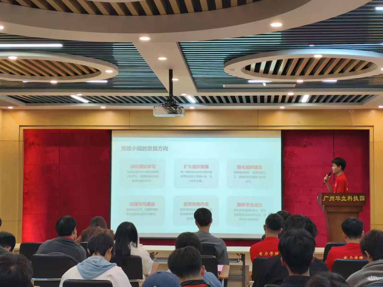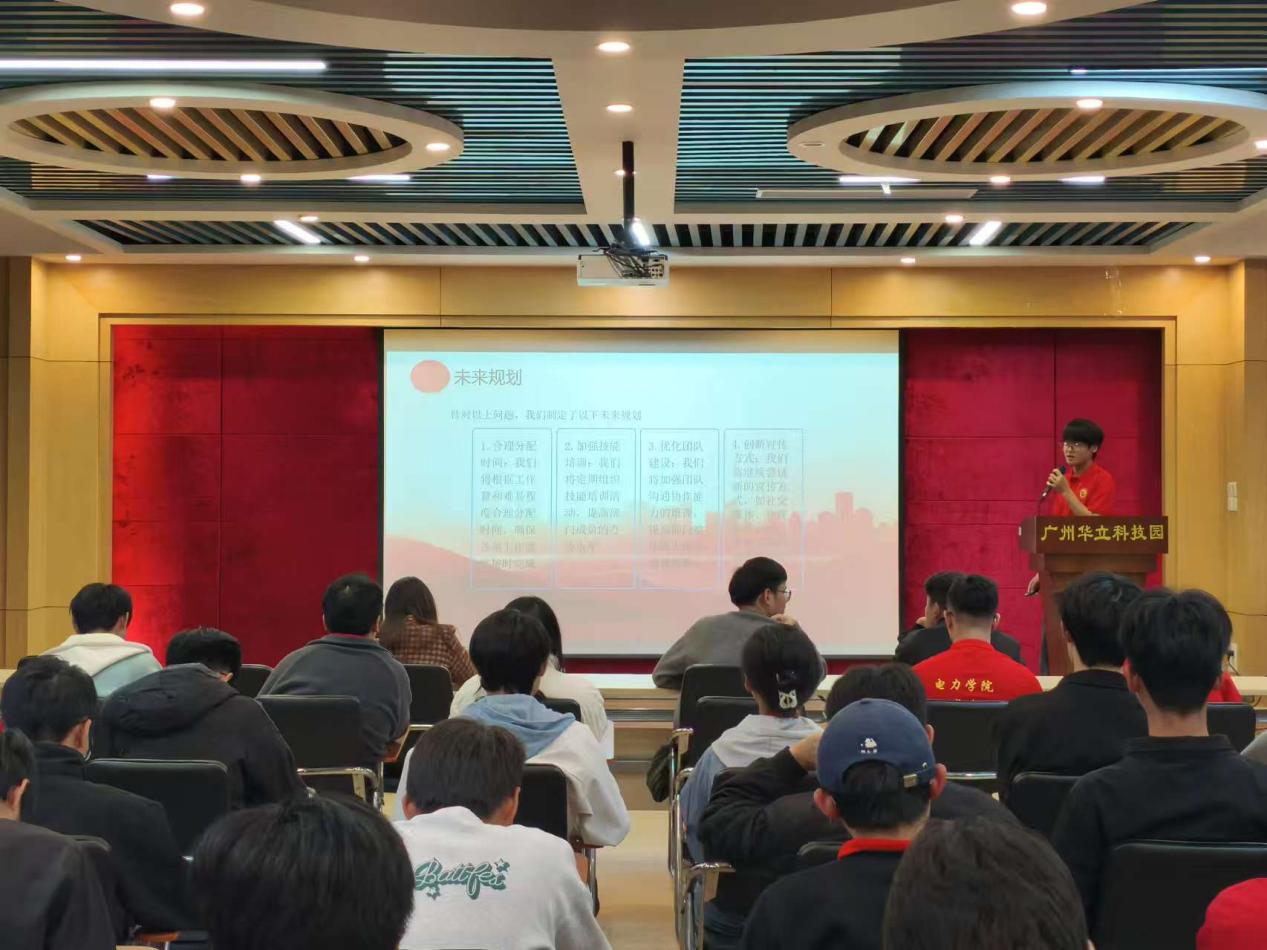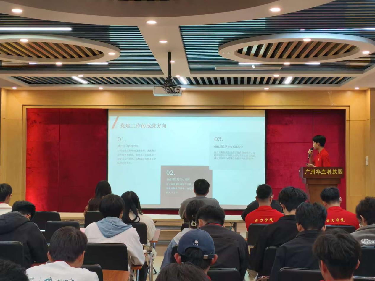 其次,电力学院党总学生党建小组各部门代表上台总结汇报,他们分别是秘书部叶释文,组织部陈霖,新闻部连宜龙,信息部陈沛宗同学上台汇报这一学期的工作总结以及对未来的展望。随后学生党建小组总负责人何梓豪同学总结汇报。他讲到,回顾过去一年的工作,我们有做得好的地方,也有做得不足的地方,我们要把做得好的地方做的更好,做得不足的地方得到改善。面对未来我们要团结一心迎接挑战,取得更大的成绩。