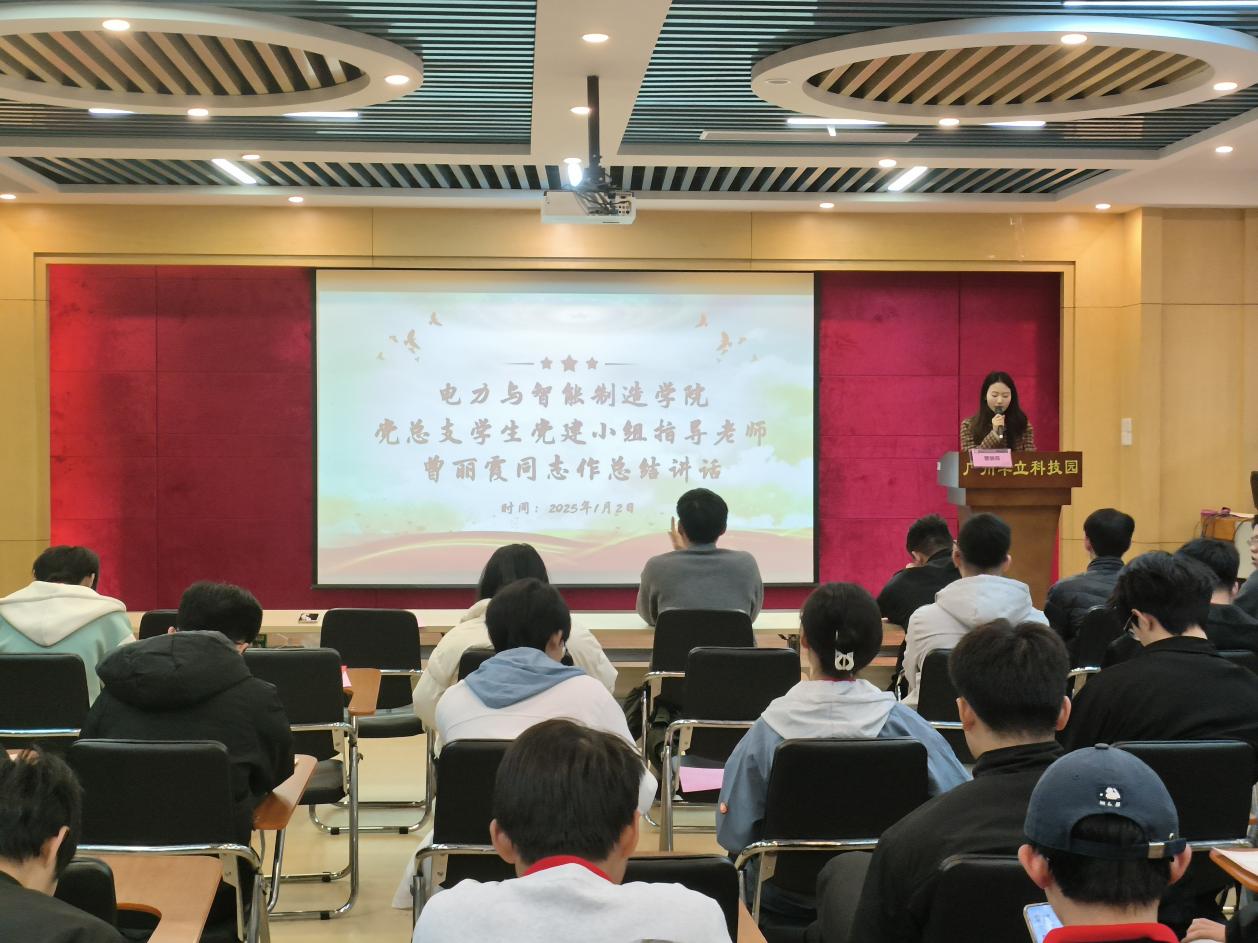 最后,由学院党总支学生党建小组指导老师曾丽霞作总结讲话,她讲到前方道路虽曲折艰难,但起点就在我们脚下,我们应该在立足于传统工作与活动的前提下,不断投身实践,不断增强工作的感召力、吸引力和影响力,创造新的业绩,为电力学院党总支学生党建工作做出更大的贡献!
