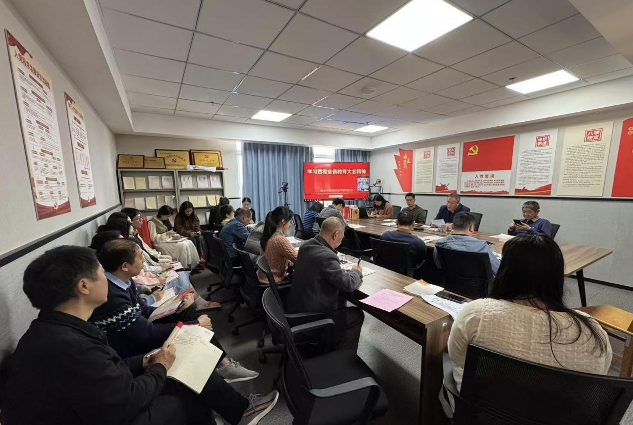 2月28日下午,学院党总支召开会议传达学习全省教育大会精神,学院广州校区的全体教师参加了会议,云浮校区的教师通过连线方式也参加了会议。
