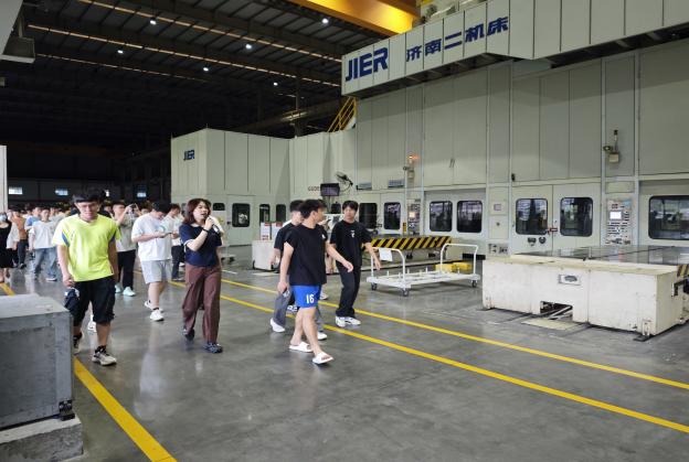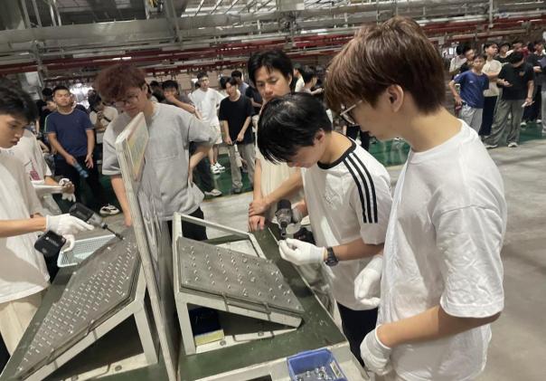 在讲解员的引导下,师生们依次走进冲压、焊装、总装等工艺车间,了解汽车制造从零部件到整车的全流程。目睹高度自动化生产线的机械韵律,凝视全智能机器人焊接的火花,驻足严格质量保障体系执行的现场,同学不仅见证了现代汽车制造的科技实力,更被“行有道·达天下”的企业文化于“奋力拼搏、团结协作、知难而进,志在必得”的企业精深深触动。正是新时代产业工人每个技术突破的累积,构筑起现代化产业体系的基石;正是每道精益求精的制造工艺,书写着技能报国的青春答卷。