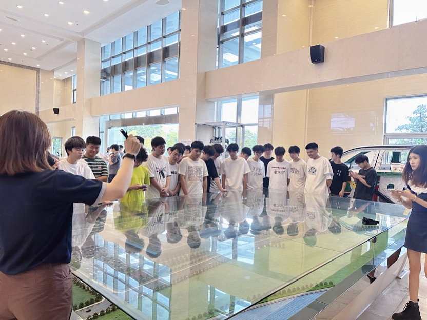 在北汽(广州)汽车有限公司展厅内,企业讲解员讲解公司的发展历程和中国新能源汽车的崛起历程。同学们深刻感受到改革开放40余载中国制造业的跨越式发展,特别是中国汽车工业从"制造""智造"的技术突破。而每一辆国产新能源汽车的背后,见证着中国制造向中国智造转型的技术突破,凝聚着产业工人精益求精的工匠精神。在青年学子心中厚植起"把论文写在祖国大地上"的情怀,激扬起以技能革新赋能民族复兴的青春志向。
