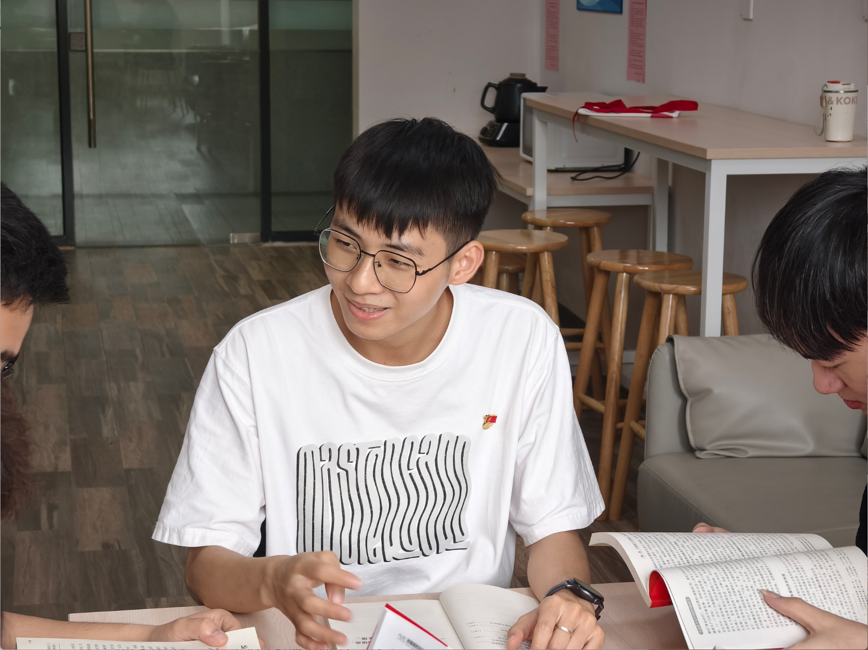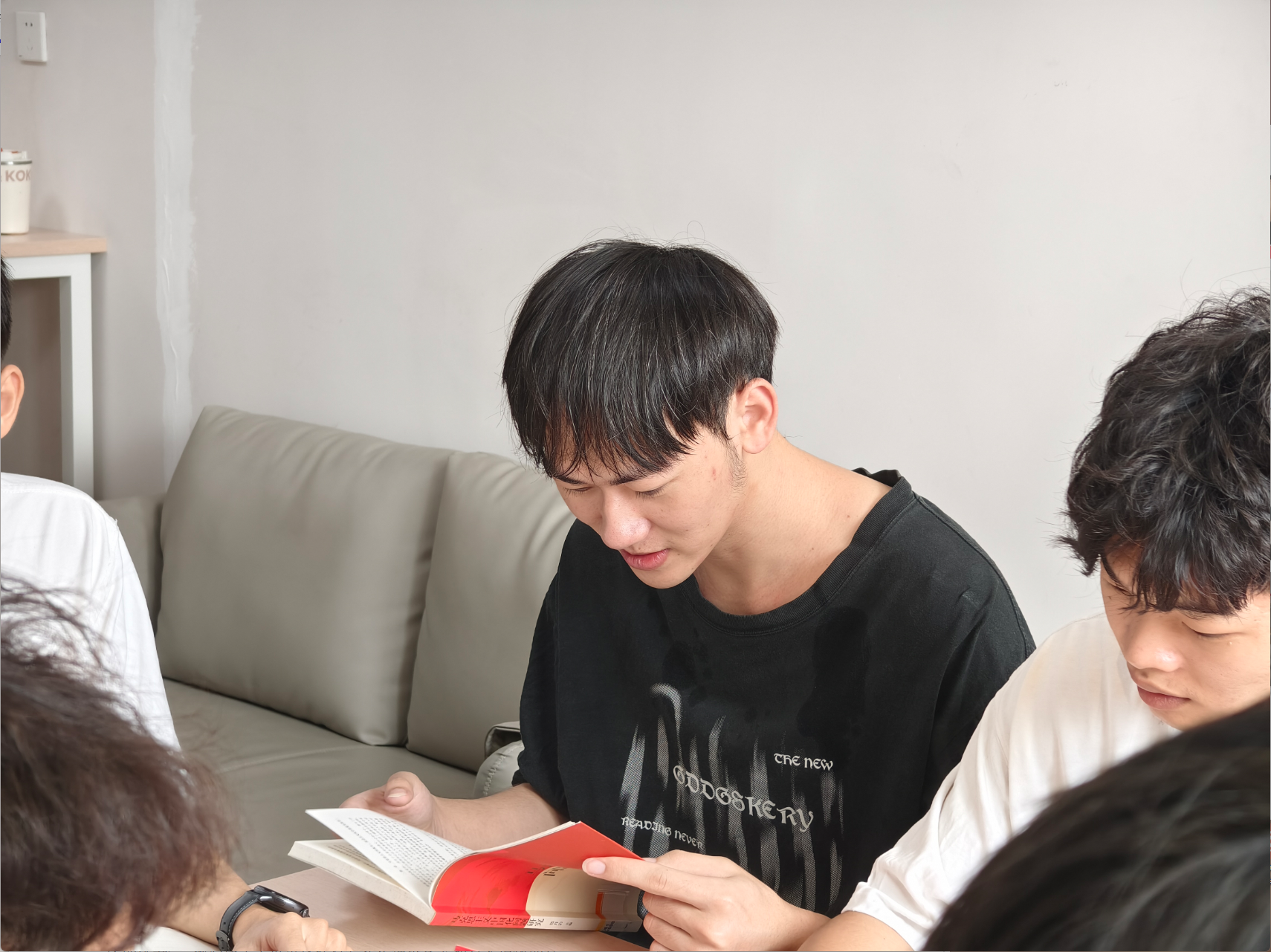 窗外雨声淅沥,室内书香氤氲。在学生社区里一场别开生面的读书分享会正火热进行,教师党员吴世涛带领着五位学生党员和积极分子,共同徜徉于知识与信仰的海洋,其中,他作为思想引领者的角色尤为亮眼。