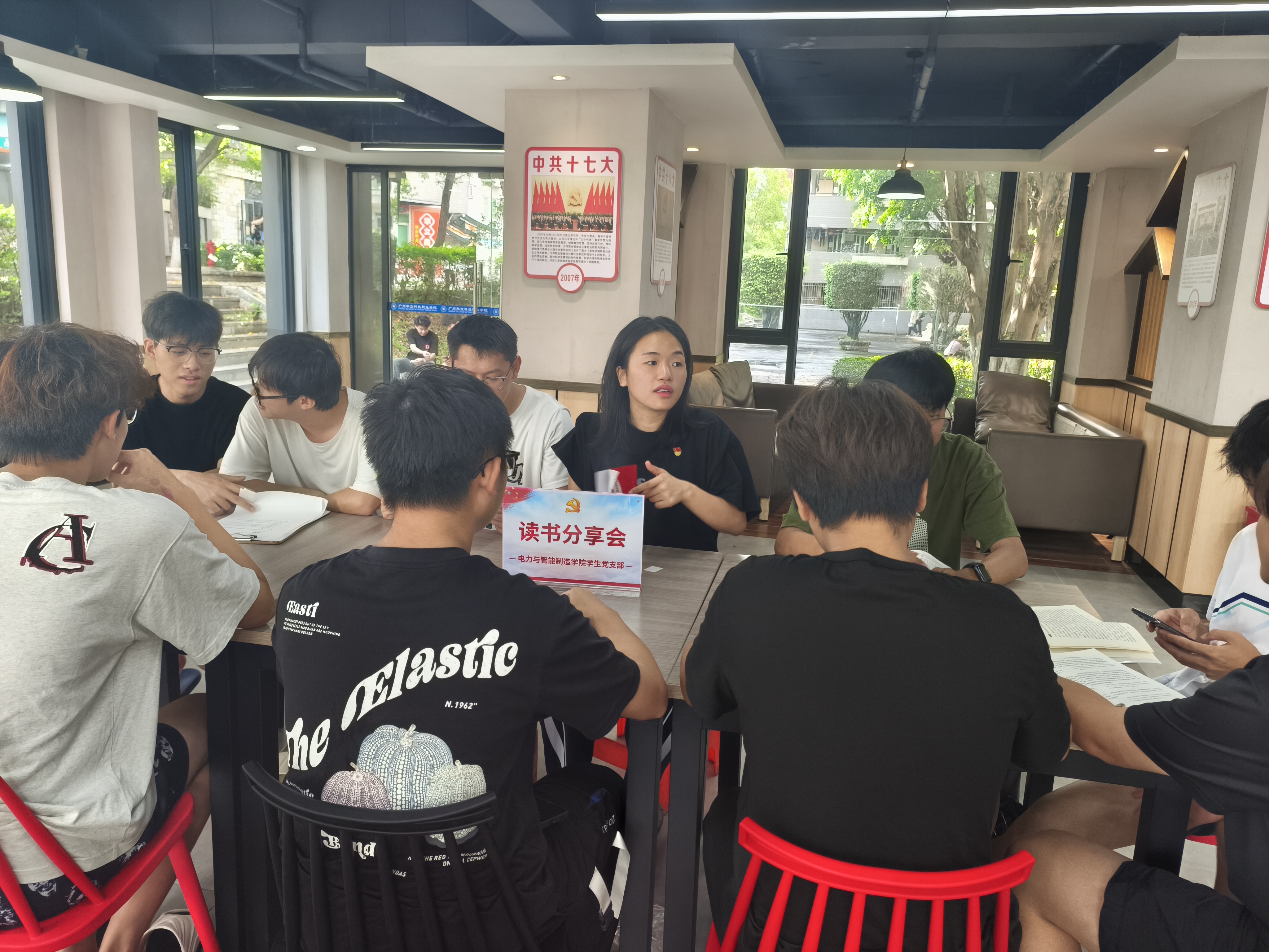 作为电力与智能制造学院学生党支部的党员伍景太,于6月27日,走进G2楼的“一站式”学生社区开展“读书分享”,带领学生分享了《星星之火,可以燎原》,书中面对悲观质疑,他以中国国情为基,指明红色政权依托“工农武装割据”,能在困境中成长。文中借对革命形势的剖析,传递出坚定信念——微小火种能成燎原烈焰,为迷茫的革命者点亮方向,让“农村包围城市”之路愈发清晰,是指引革命走出低谷的思想火炬。