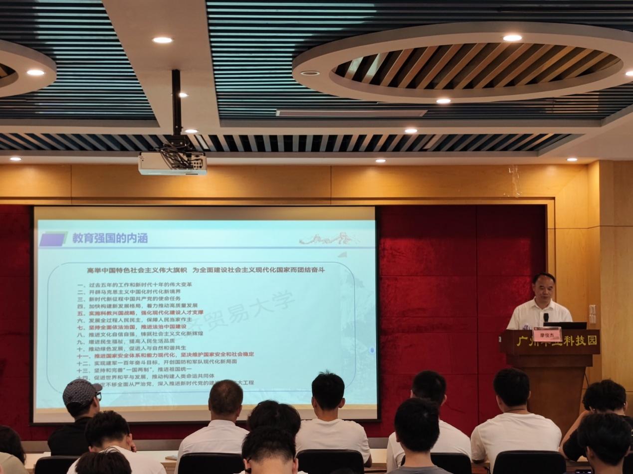 为落实立德树人根本任务,培养学生的爱国之情、砥砺报国之志,激励学生走“技能成才、技能报国”之路。6月25日上午10点30分在科技楼的报告厅,广州华立科技职业学院校长廖俊杰教授以“学习贯彻党的二十大精神,争做技能报国逐梦人”为题目,为电力学院没有课的同学上了一堂内涵丰富、情真意切的思政课。