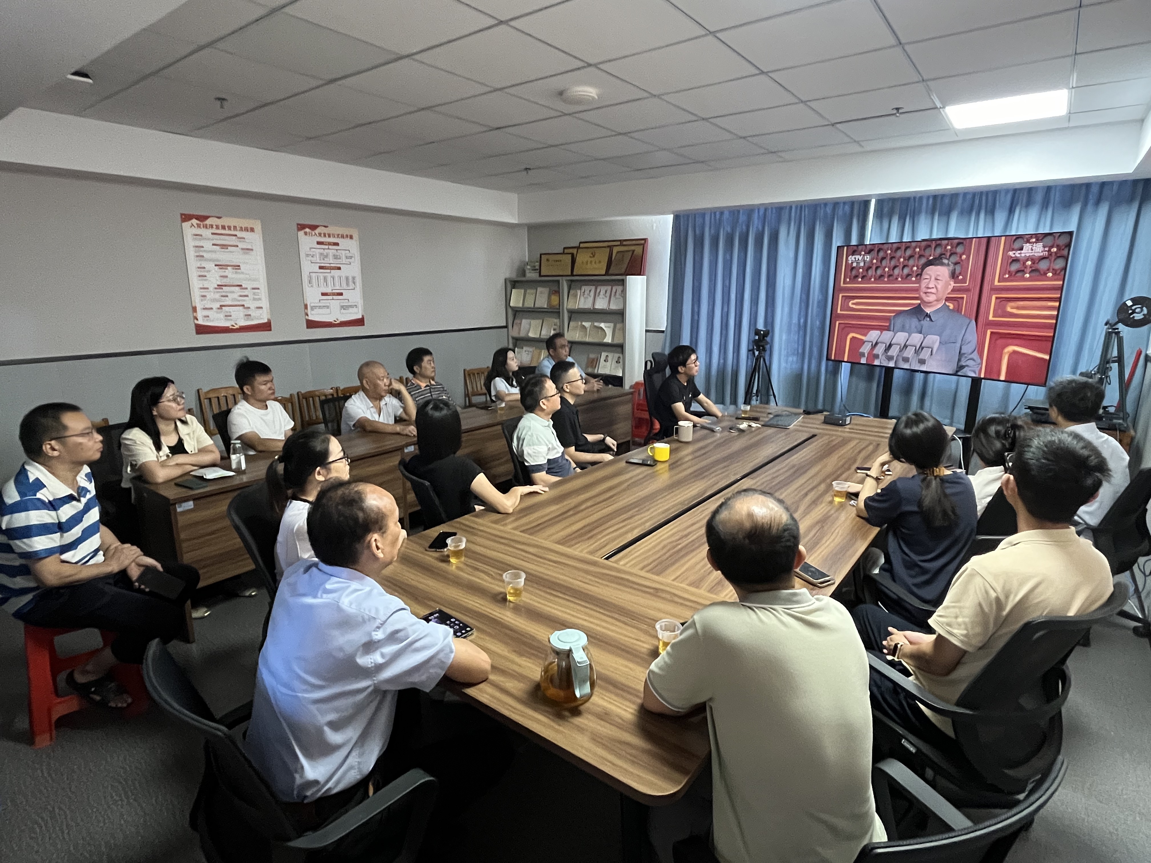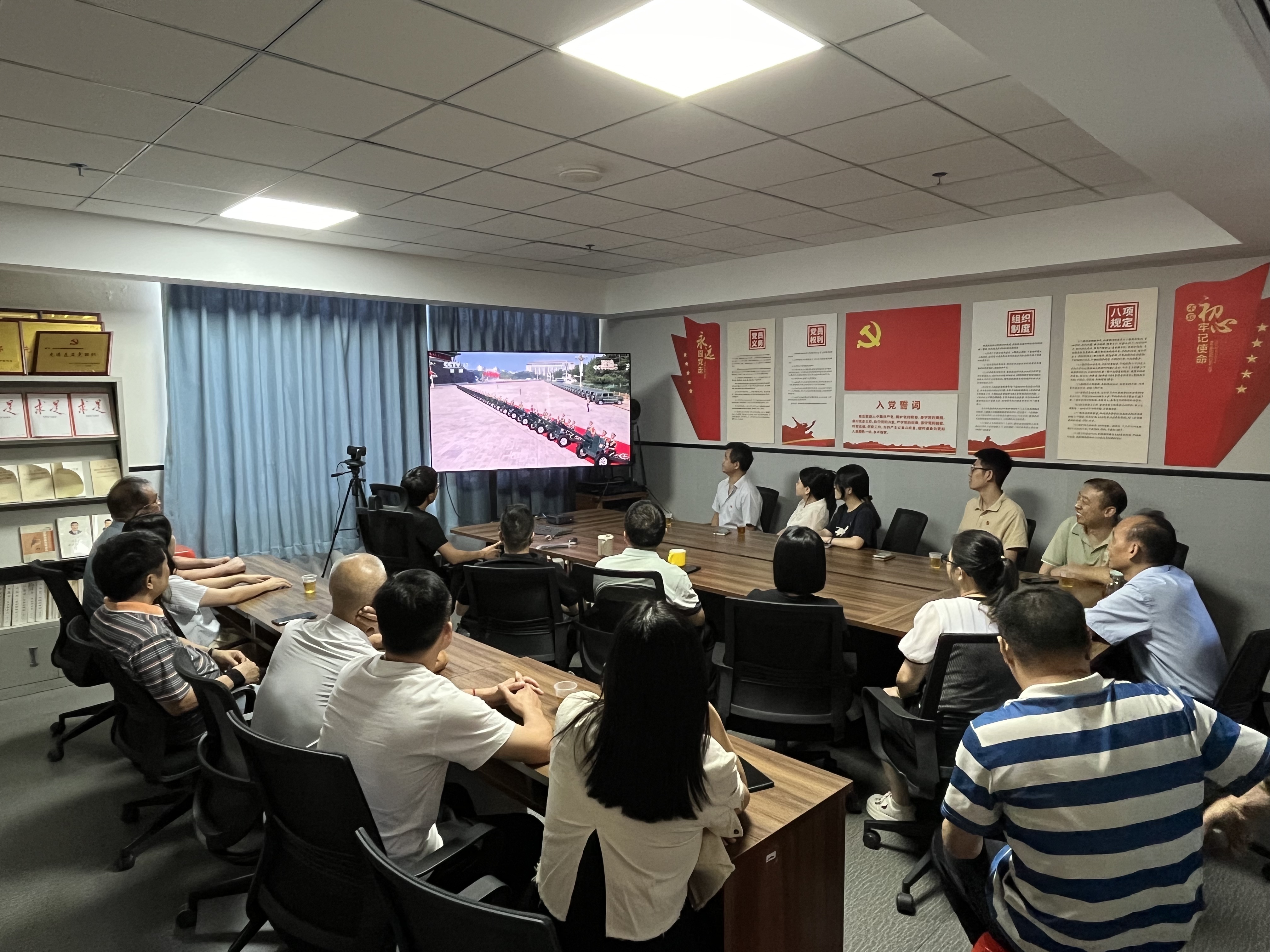 上午9时,大会正式开始。与会同志认真聆听习近平总书记重要讲话,随后,天安门广场上80响礼炮响彻云霄,伴随着雄壮的《义勇军进行曲》奏响,大家全体起立,齐唱中华人民共和国国歌,共同注视着鲜艳的五星红旗冉冉升起。当阅兵队伍的空中护旗梯队、徒步方队、战旗方队、装备方队、空中梯队依次通过天安门广场,集中观看直播现场掌声雷动,整齐的阵容、豪迈的气势、先进的武器装备让大家倍感自豪、赞叹不已,由衷为伟大祖国感到骄傲。