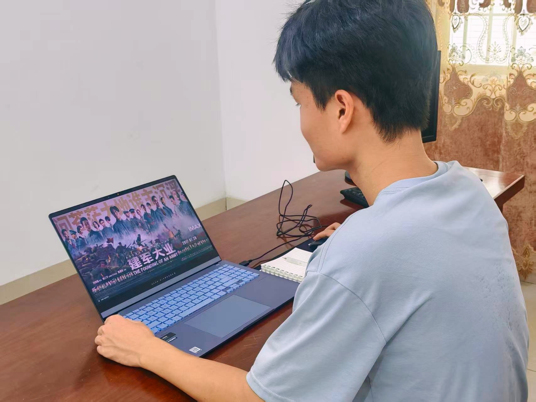 作为一名教师党员郑理广,在暑期7月24日组织学生观看电影《建军大业》。