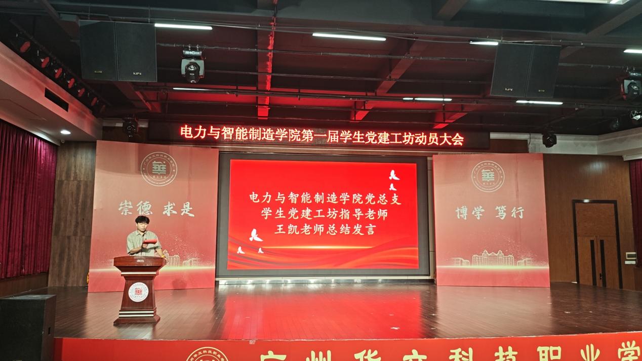 最后,学生党建工坊指导老师王凯作总结讲话,他要求全体成员认真学习党章党规,发挥先锋作用,克服惰性思维,以昂扬向上的积极姿态投身学生党建工作,围绕“儒雅电力人”文化育人党建品牌建设,通过开展系列红色文化活动与实践,切实提升学生的政治素养与综合能力。