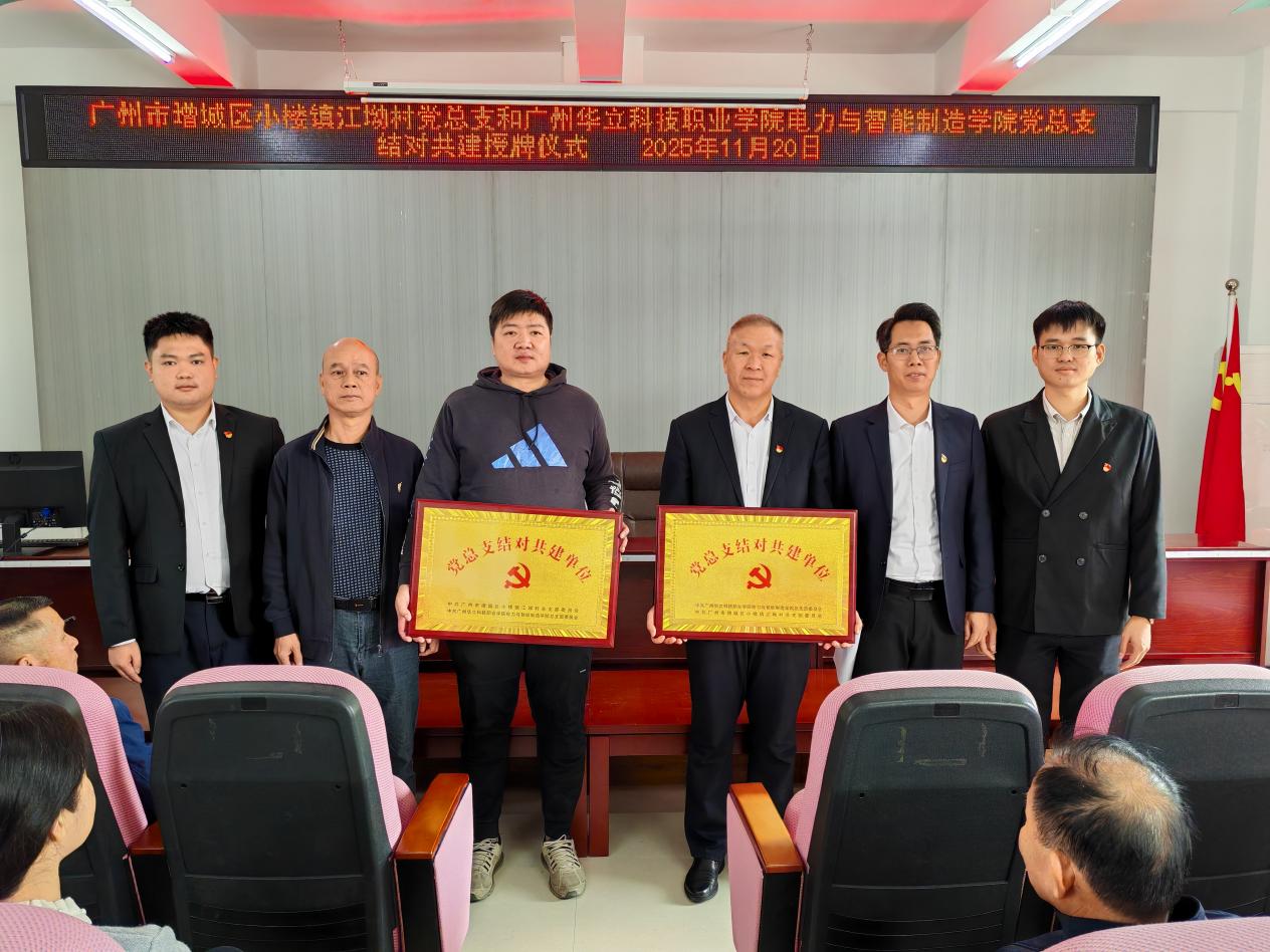 为推动高校智力资源与乡村发展需求精准对接,探索党建赋能乡村振兴新路径。11月20日,电力与智能制造学院与广州市增城区小楼镇江坳村,在江坳村村委会举行党总支共建授牌仪式,开启校村结对共建新篇章。