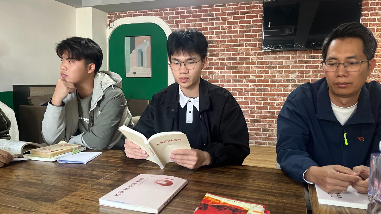叶释文同学分享了《舒城红——行走在百公里红飘带上》的阅读感悟。他认为,该书以细腻的笔触和“在地者”的真诚,让红色历史触手可及。书中传递的奋斗精神,更是激励当代人不忘初心,砥砺前行。