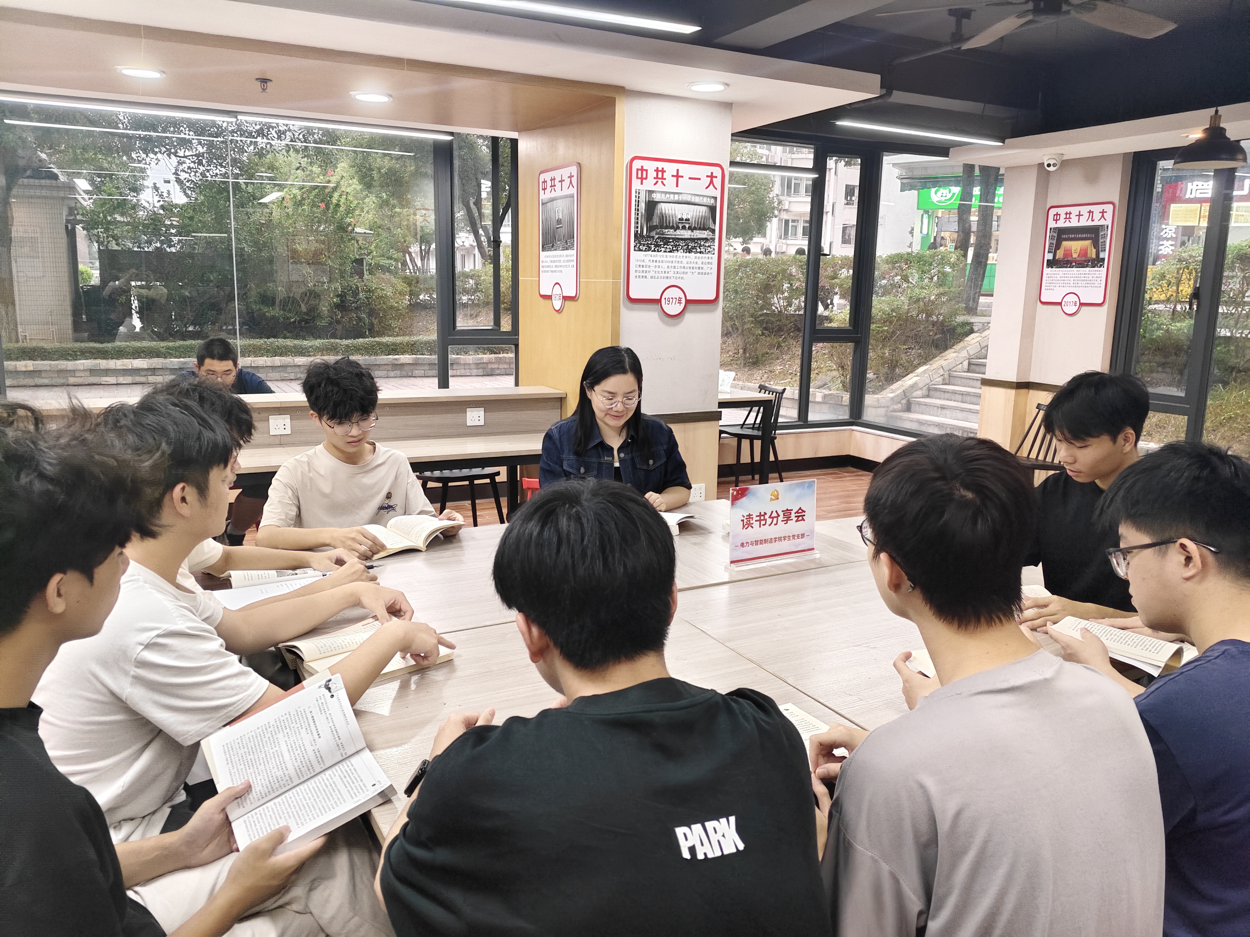 2025年10月29日,电力与智能制造学院党员教师李姗在G2楼的“一站式”学生社区组织开展“读书分享”,引领学生在红色经典中汲取奋进的力量。
