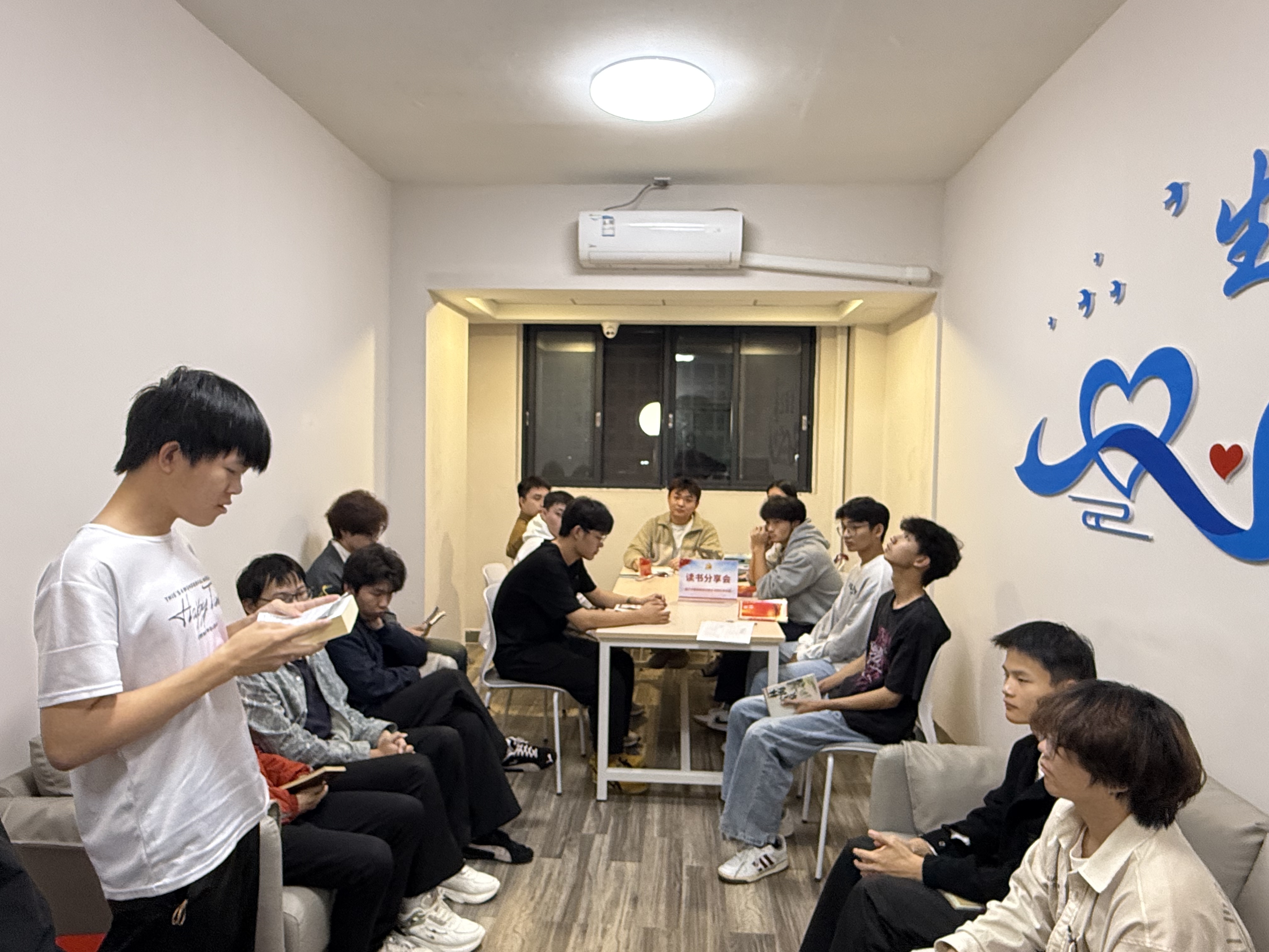 学生代表依次分享感悟:有的同学分享《青春之歌》,讲述林道静从迷茫到觉醒的成长,坦言“青年的理想,从来都与时代同频”;有的同学分享《可爱的中国》,细数方志敏笔下的家国深情,直言“如今的可爱中国,正是先辈们拼尽全力的奔赴”。在交流中,陈晓锋老师不时结合自身经历谈感受,从革命年代的物资匮乏到当代青年的责任担当,让红色故事与现实生活形成呼应,现场时而沉静聆听,时而轻声热议,墨香与初心在室温情交织。