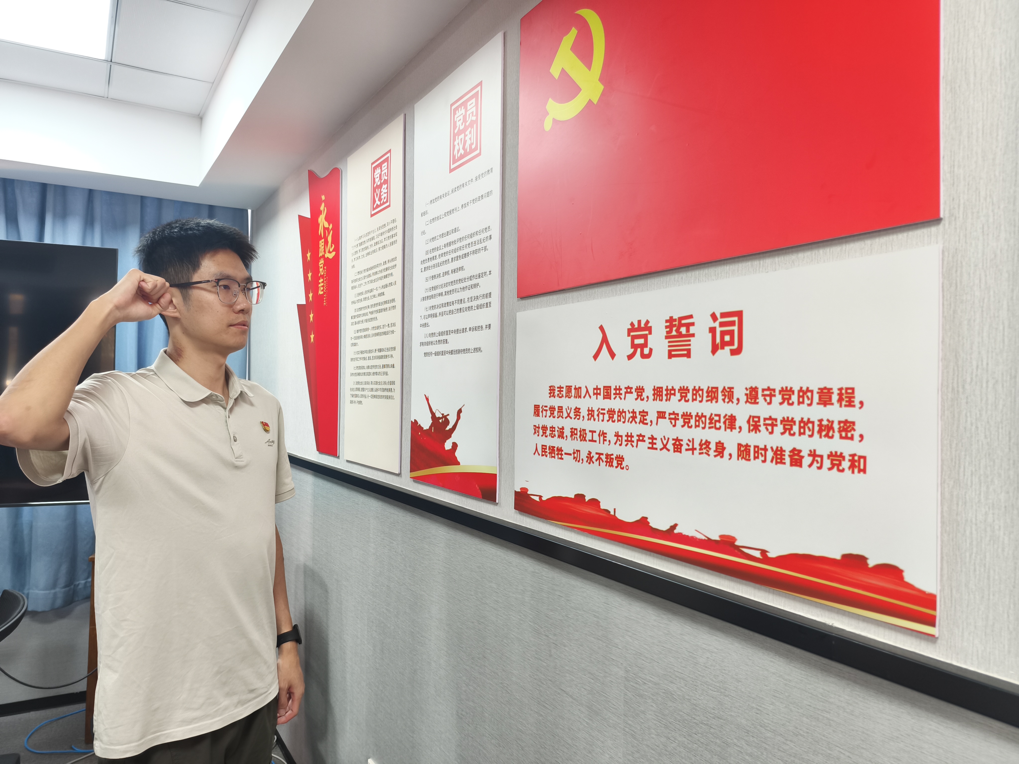 回望入党时举起右拳、庄严宣誓的那一刻,心中依然激荡着滚烫的赤诚与坚定的信念。今天,我再次重温入党誓词:“我志愿加入中国共产党,拥护党的纲领,遵守党的章程,履行党员义务,执行党的决定,严守党的纪律,保守党的秘密,对党忠诚,积极工作,为共产主义奋斗终身,随时准备为党和人民牺牲一切,永不叛党。”岁月流转,这份入党初心始终是我前行路上最坚实的力量。