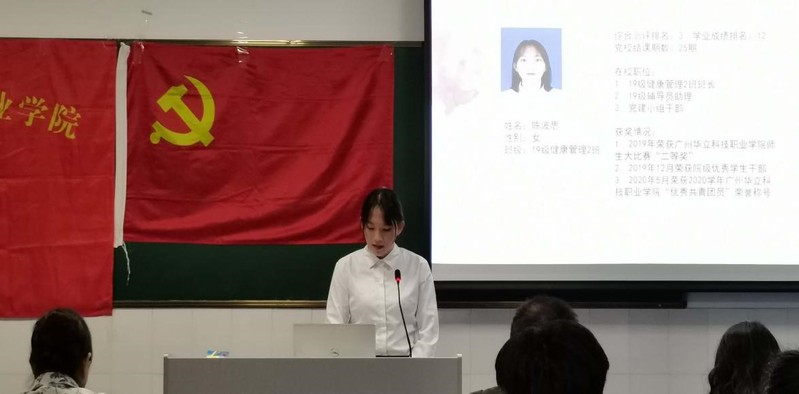 健康学院党支部宋依谜同志主持会议,她首先向各参会人员报告了出席本次会议的人数,符合召开中共预备党员的通表大会条件。并通报本次大会,计划吸收3名中共预备党员。最后,祝愿她们能够如期被吸收为中共预备党员。