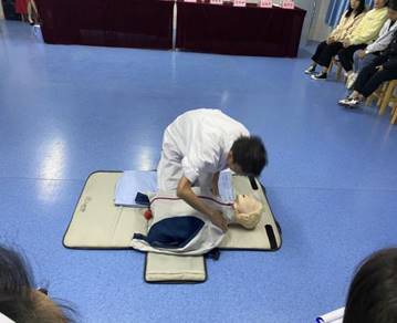 首先老师们讲述了如何判断救助者属于需要心肺复苏患者,分为意识、呼吸、脉搏三种判断方法。讲述了心肺复苏术分为三个重要步骤: 1、胸外心脏按压2、开放气道 3、人工呼吸。并具体讲述了救助过程中需要注意的问题和经常出现的错误,以免对患者造成二次伤害。接着老师讲述了对不同类型的人进行救助时的异同点,分为两类人:儿童和成人。抢救生命,争分夺秒!心跳呼吸停止患者心肺复苏的时机为:黄金4分钟!