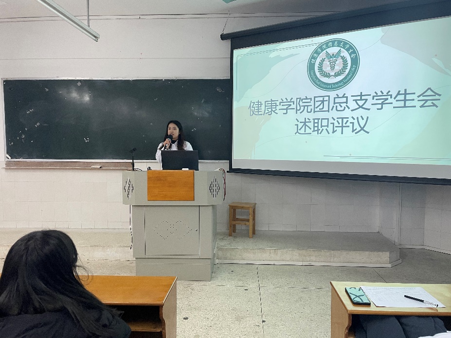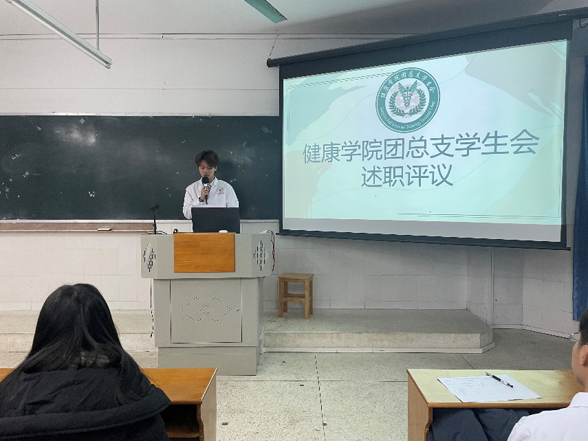 2021年1月11日健康学院学生会全体人员召开学生会述职评议会议,出席此次会议的有宋依谜学管主任、团总支学生会主席团成员、各部门部长、各活动负责人与各部门实习生,其余七十余名学生会成员参与了本次会议。