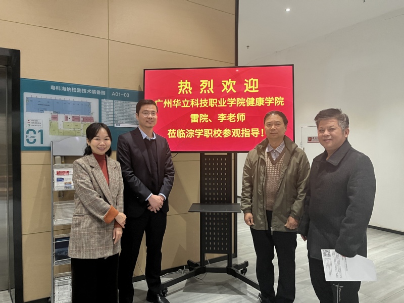 2022年1月13日,广州华立科技职业学院健康学院院长雷毅雄教授、校外教学副主任李景德一行前往广州淙学检测企业管理有限公司洽谈培训项目。