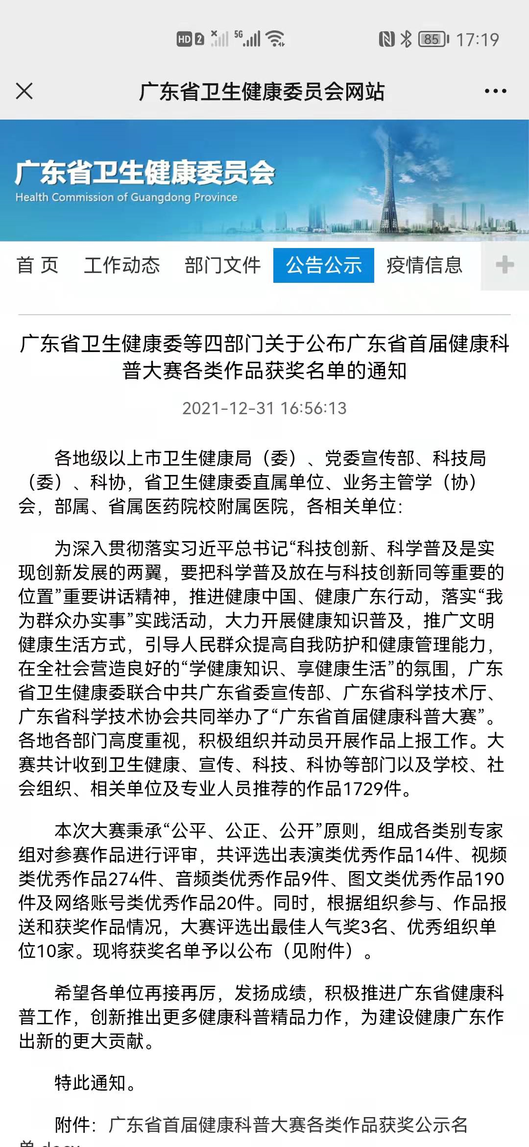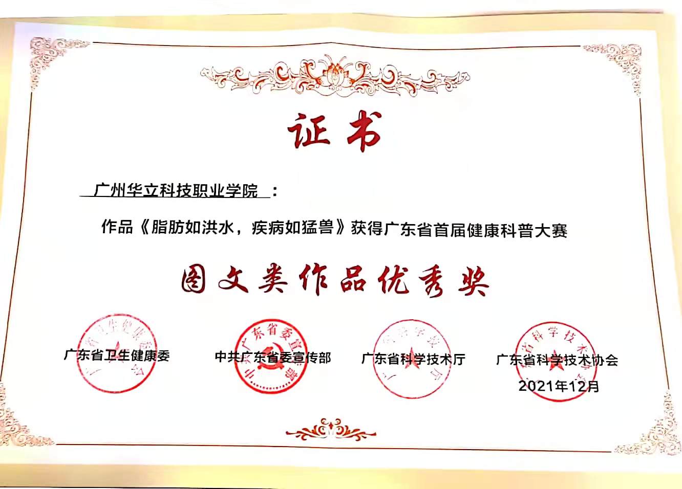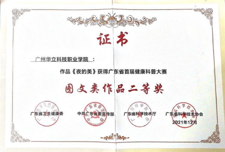 20211231-指导学生参加广东省首届健康科普大赛,获得二等奖