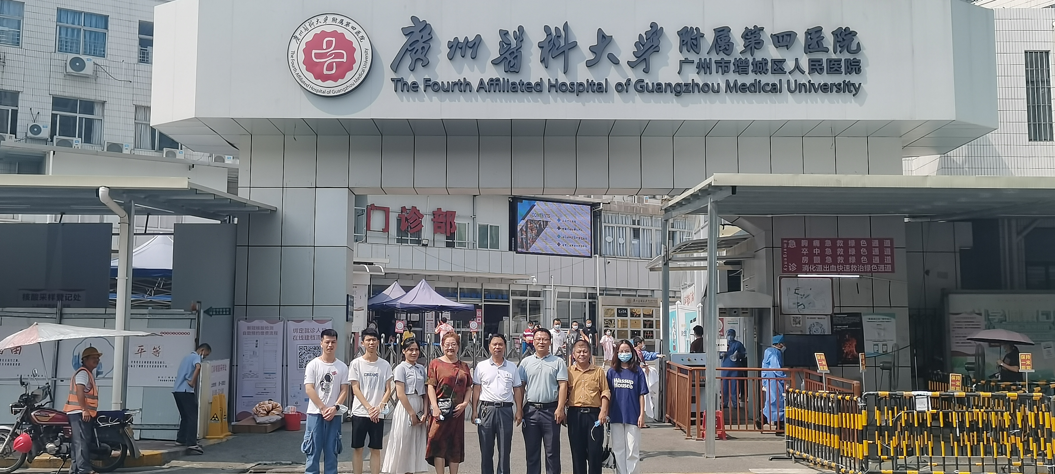 为进一步加强校医合作,了解本校学生实习情况,加强学生实习管理,提高人才培养质量,深化产教融合,2022年7月29日,广州华立科技职业健康学院院长雷毅雄、广州华立科技职业学院校外教学科科长韦建林、校外教学副主任李景德、广州华立科技职业学院健康学院20级实习生指导老师邓香华老师、校外干事缪裕平一行到广州医科大学附属第四医院看望2020级跟岗实习的16位学生,并深入了解他们在校外的学习、工作情况。