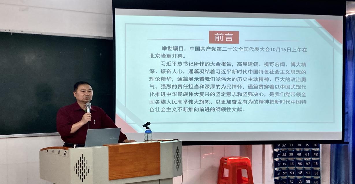 为深入贯彻习近平新时代中国特色社会主义思想和党的二十大精神,全面落实《关于新时代加强和改进思想政治工作的意见》,进一步加强学生思想政治教育,紧抓开学契机,3月2日下午,健康-中医药学院雷毅雄院长以“学习党的二十大精神,着力推动高质量发展”为主题,在西二205教室为入党积极分子和党建小组成员讲授2023年春季学期思政第一课。
