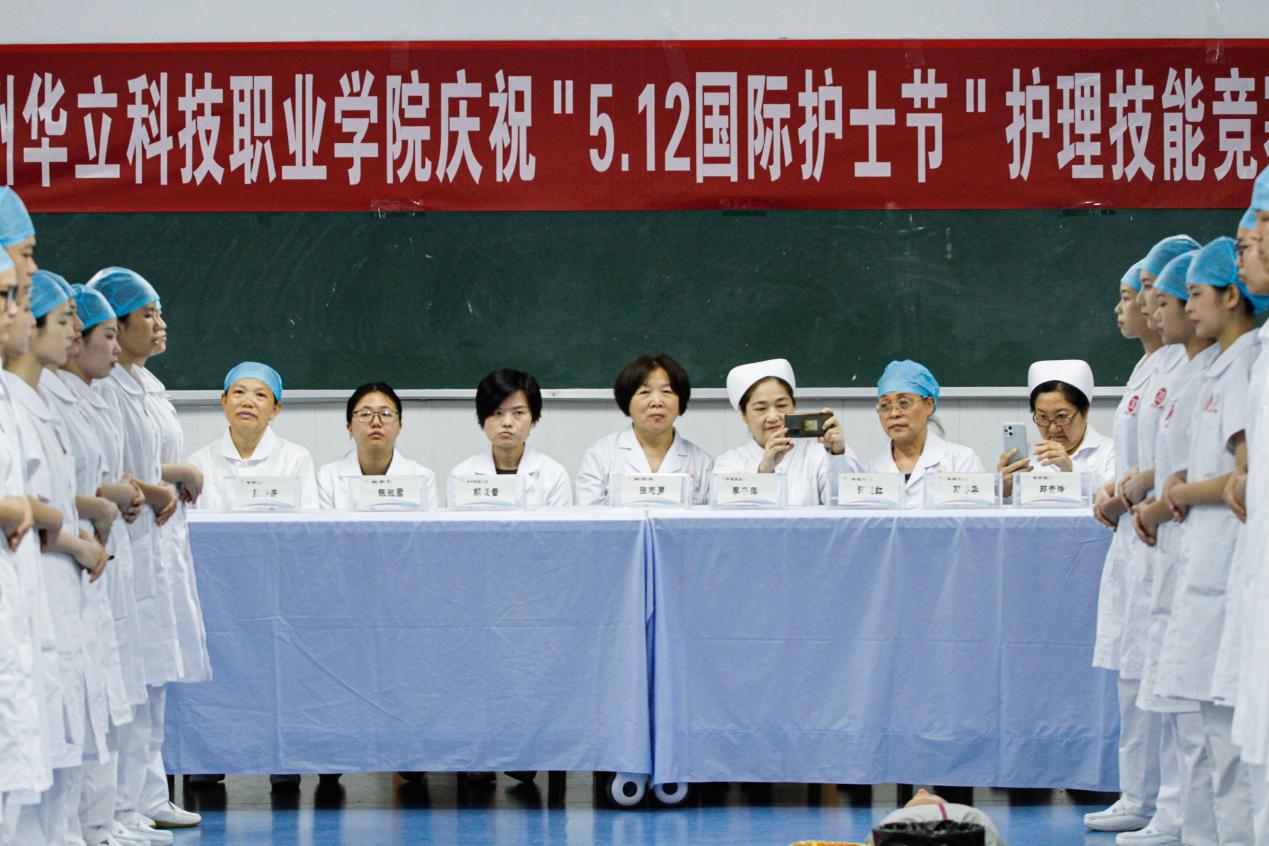 为迎接第112个"5.12"国际护士节的到来,培养学生“崇技强能”的职业精神、弘扬“劳动光荣、丰富校园文化生活的有力抓手,2023年4月24日下午16时,在西二504开展了“5.12”心肺复苏技能大比拼。出席的嘉宾有张志勇院长、胡筱蕾主任、李子萍教授、许志红教授、陈淑君老师等护理护理系所有老师、21级参赛选手以及志愿者。