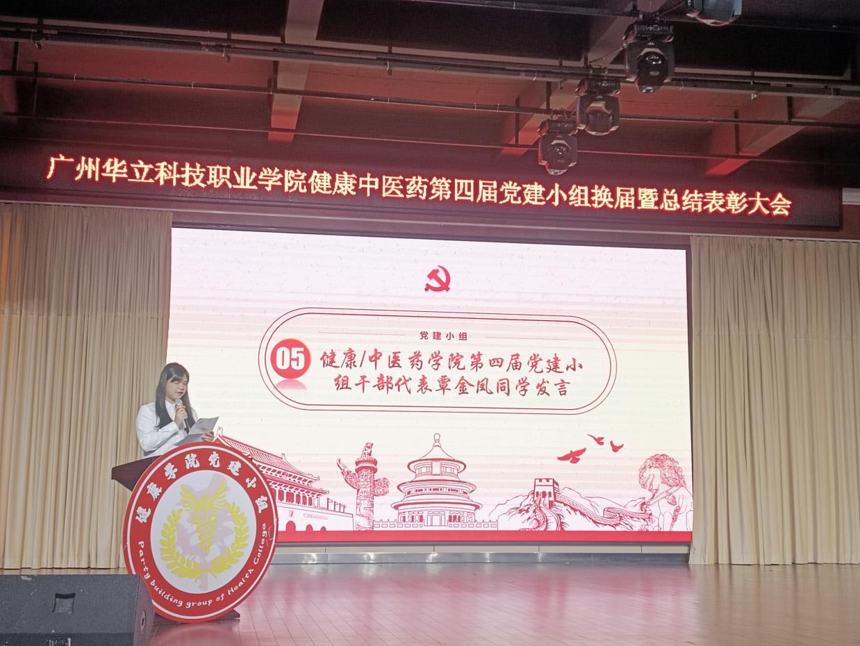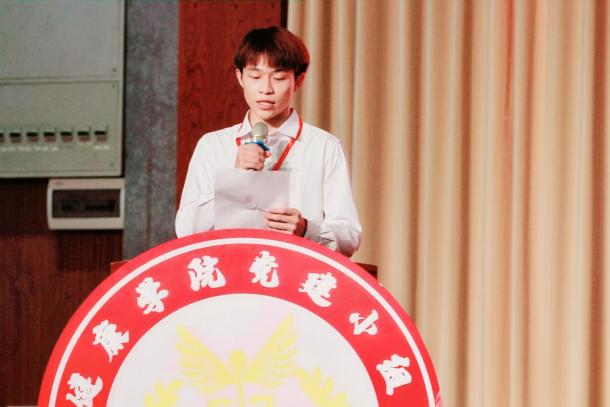 随后,健康/中医药学院第四届党建小组部长覃金凤同学代表发言。她对上年度的党建小组工作进行了总结并提出了两个希望。一是希望新一届的干部们能够携手共进,齐心协力,秉持全心全意为同学们服务的宗旨,将党建小组做大做强,在推动学院的党建工作再上一个新的台阶。二是希望师弟师妹们永远热忱,遇强则强,永不放弃,在工作中有所收获、有所成长。