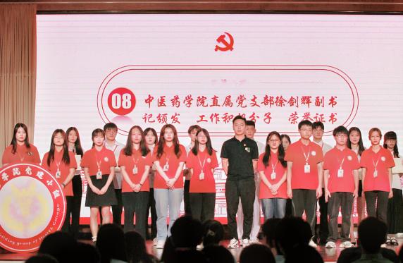 紧接着,进行颁奖仪式和聘书颁发仪式。中医药学院直属党支部副书记徐剑辉同志为在过去一年工作中涌现出来的优秀学生颁发“工作积极分子”,鼓励党建小组成员今后继续保持优良工作作风,在工作学习中再创辉煌;曾玉梅老师为上一届的学生干部颁发聘书,为学生干部过去一年的辛勤付出画上圆满的句号。