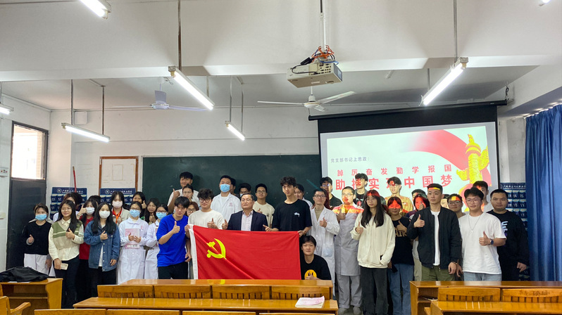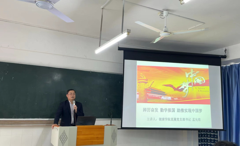 根据学校党委工作安排,2024年3月18日中午,健康学院直属党支部在西2-203教室,为健康学院22级护理、健康管理、康复治疗技术等专业的学生代表和党建小组成员组织一堂别开生面的思政课。党支部书记孟允煌以《踔厉奋发勤学报国助推实现中国梦》为主题,鼓励同学们踔厉奋发、勤学报国、勇于实践、艰苦奋斗、开拓创新,用自己勤劳的双手收获成功、托起自己的梦、助推实现中国梦。